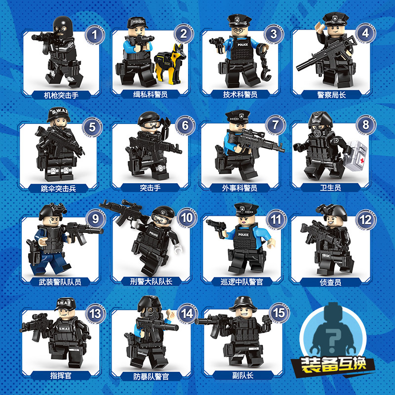 📚 沃马积木新款特警系列特种兵小人武器装备人仔警察模型拼装玩具男