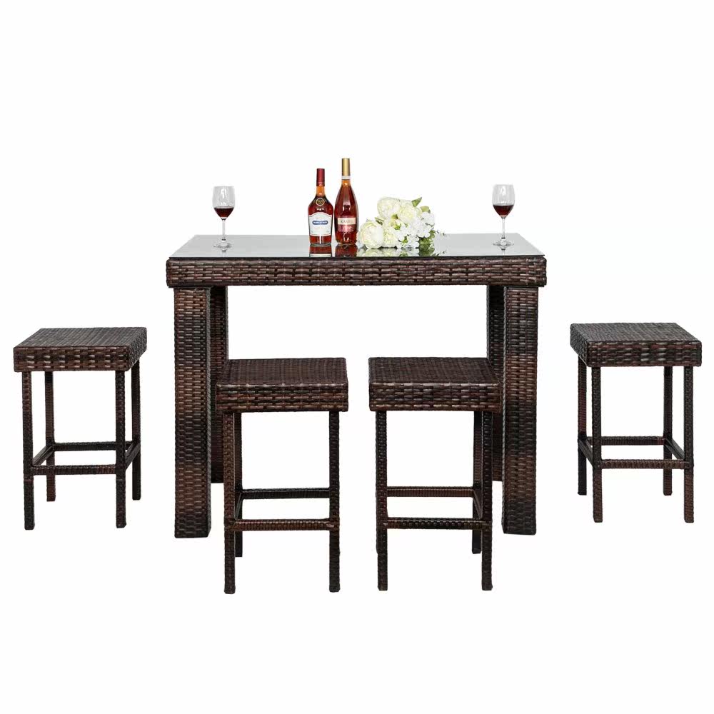 📚 Dining Table Set Bar Stool-Table and Chair Set of 5 Brown Gr