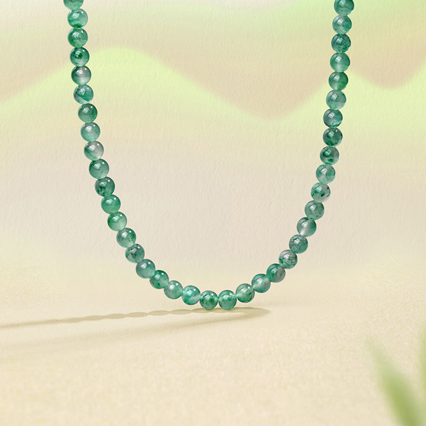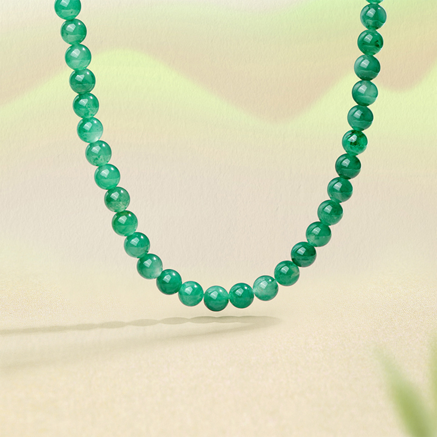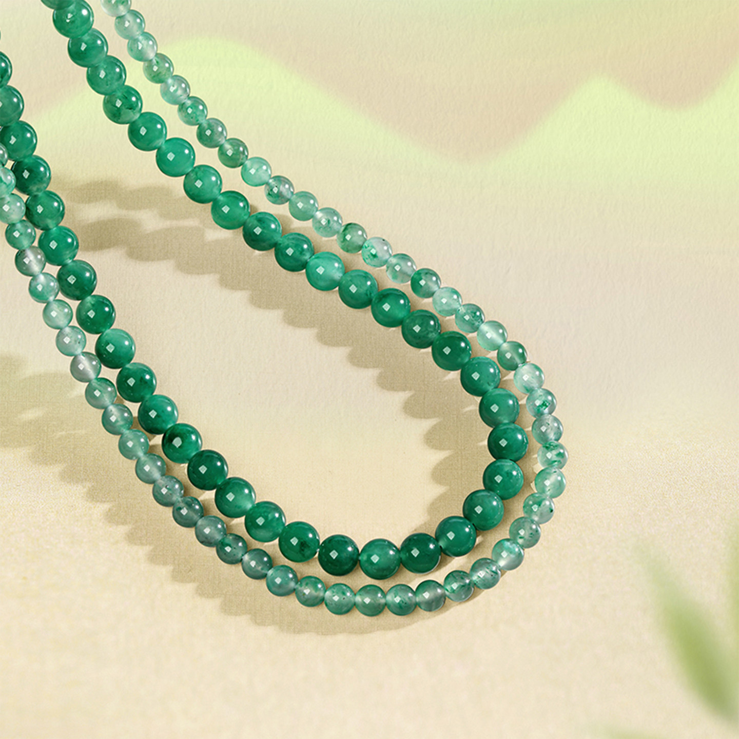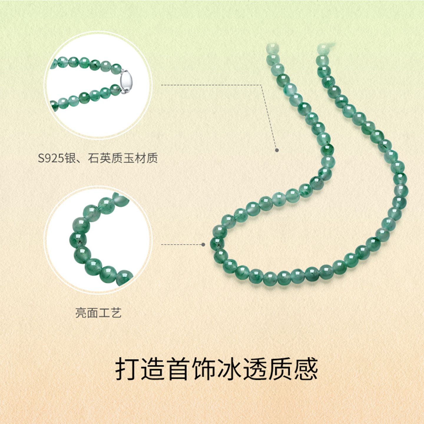 📚 周六福天然正品飘花非洲翠玉项链女玉石串珠子新年礼物