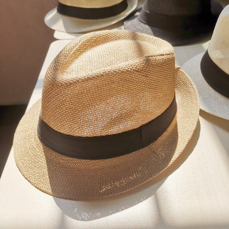 📚 新品推荐 光板纯色贴布草编礼帽英伦时尚爵士帽男休闲潮沙滩帽