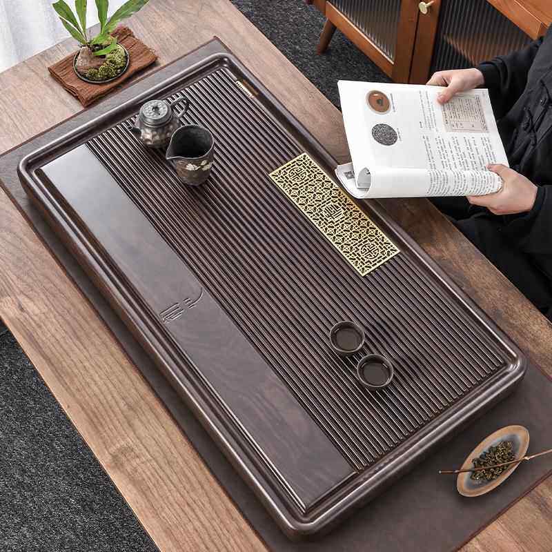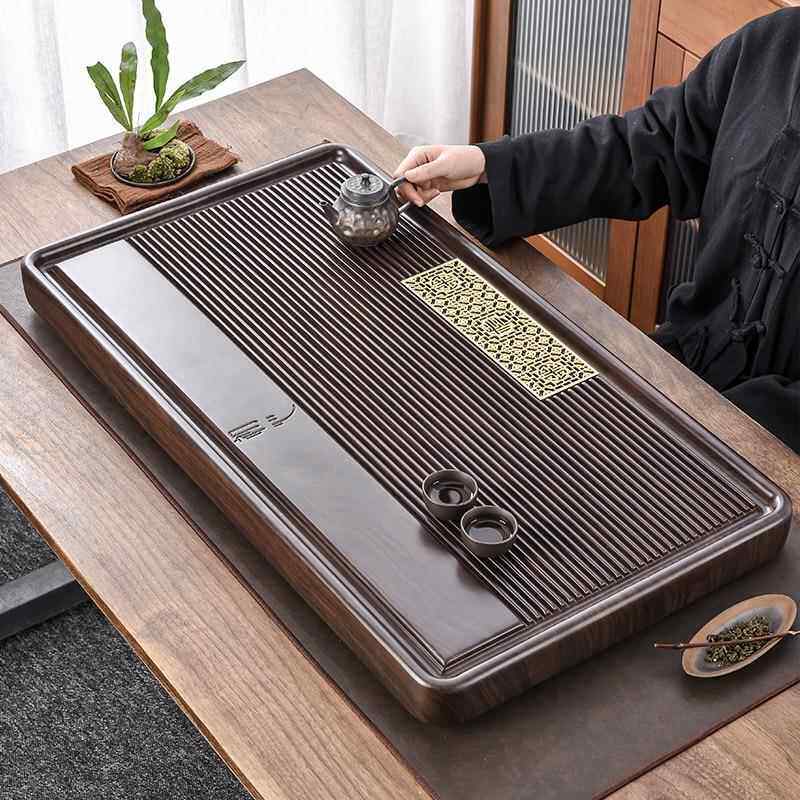 📚 茶盘黑家用排chuxin水式小茶盘茶具办公简约檀木小室海型茶茶台实