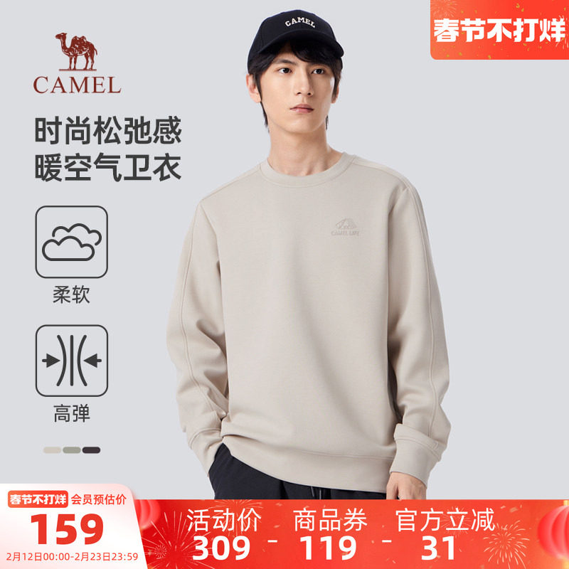 📚 骆驼男装卫衣男款2025秋冬微阔加厚保暖圆领套头时尚潮流长袖T恤