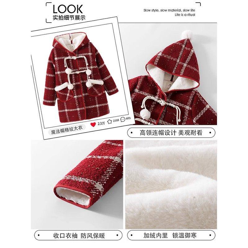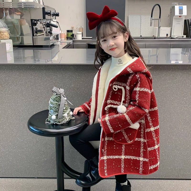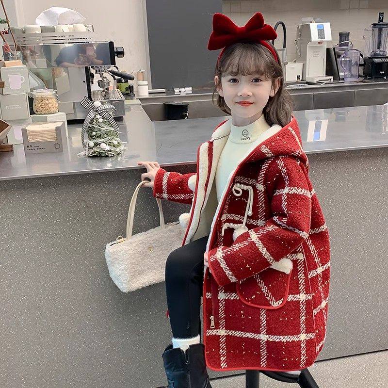 📚 女童外套秋冬装2025新款洋气儿童呢子大衣加绒加厚小女孩红色毛呢