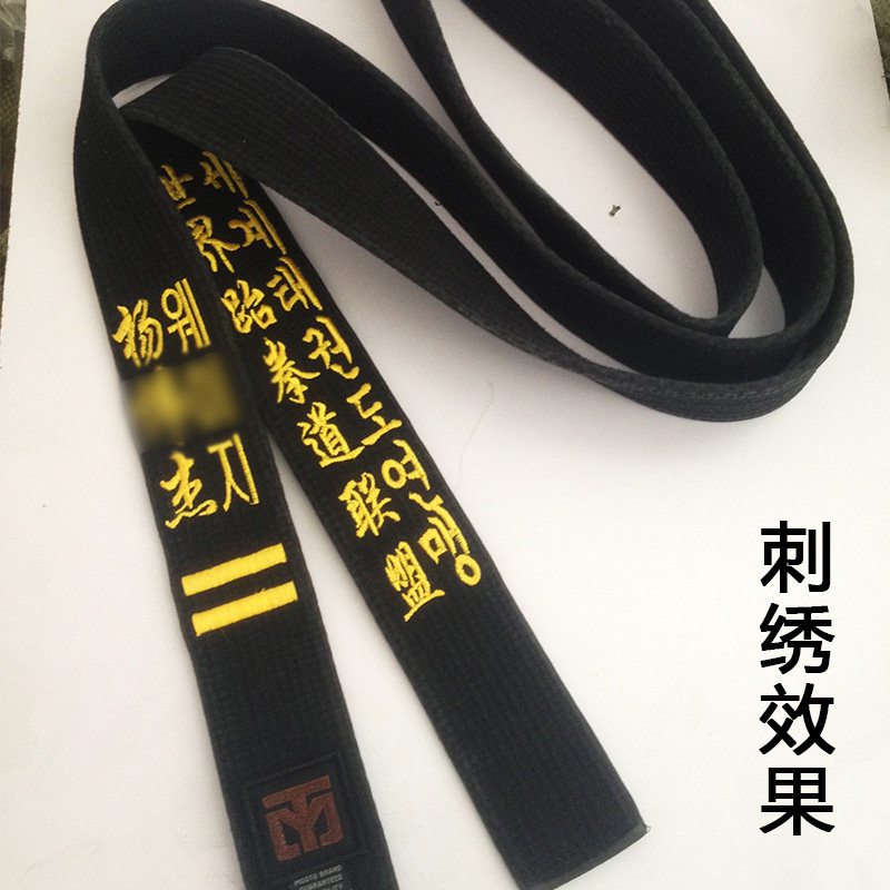 📚 跆拳道黑带绣字教练道带刺绣晋级黑带MOOTO黑带段位一二三段黑带