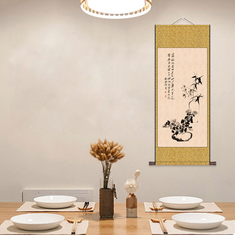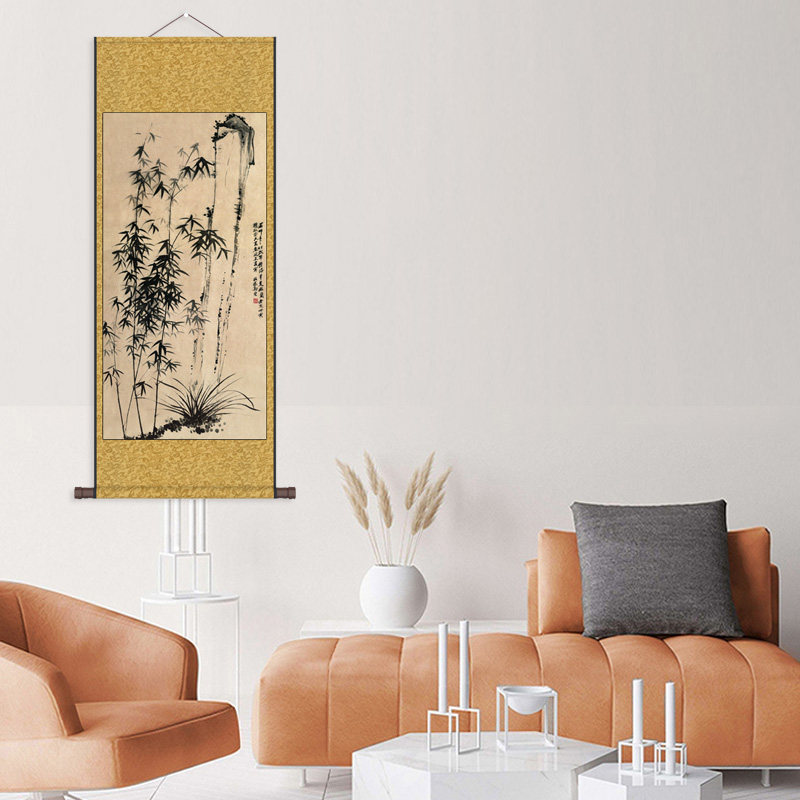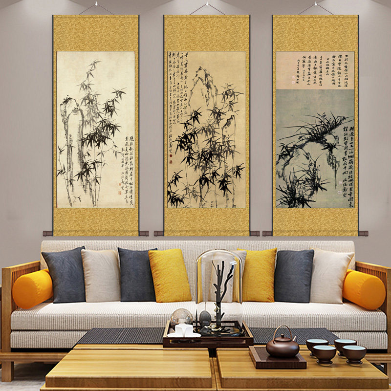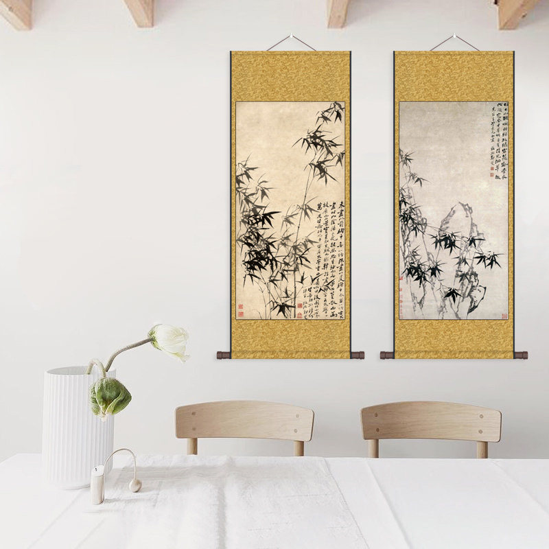 📚 郑板桥竹子挂画卷轴画新中式丝绸画竹报平安仿古画绢画布画幽兰图