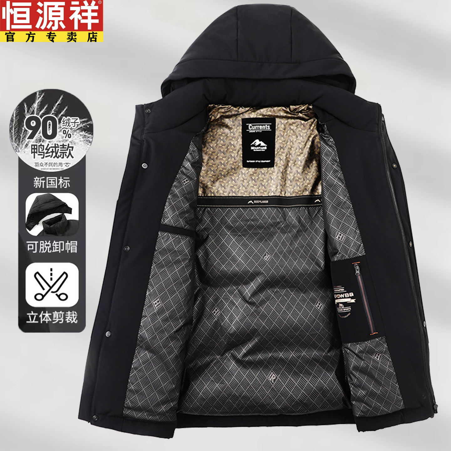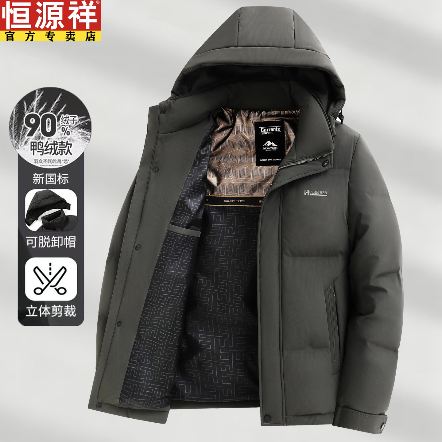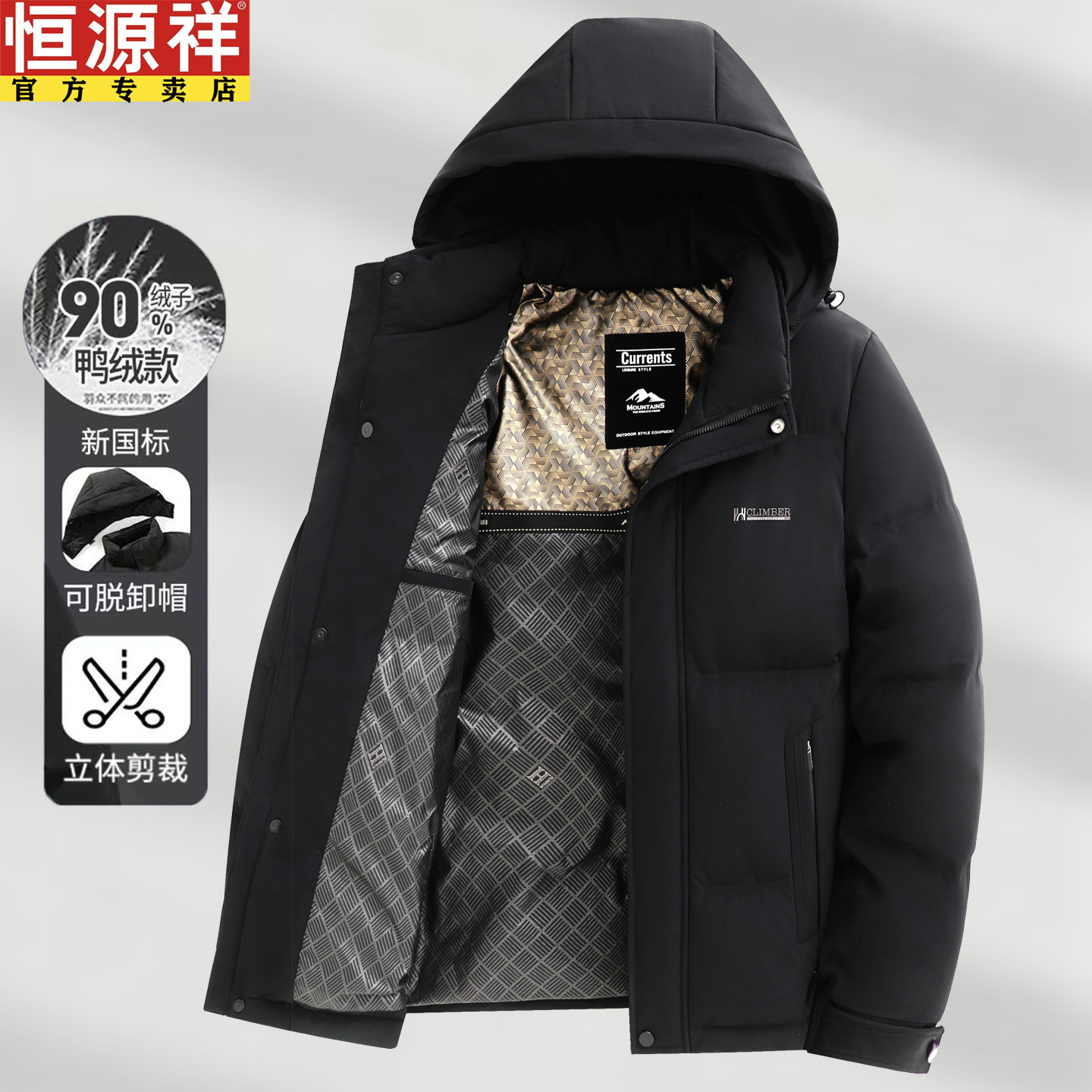 📚 恒源祥加厚羽绒服男士冬季新款爸爸装中老年短款白鸭绒外套父亲装