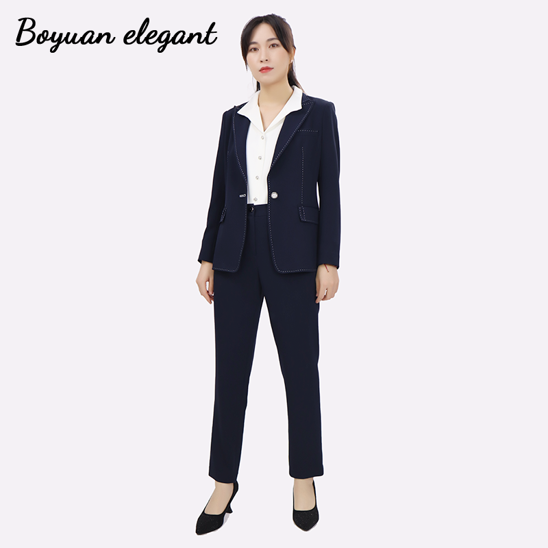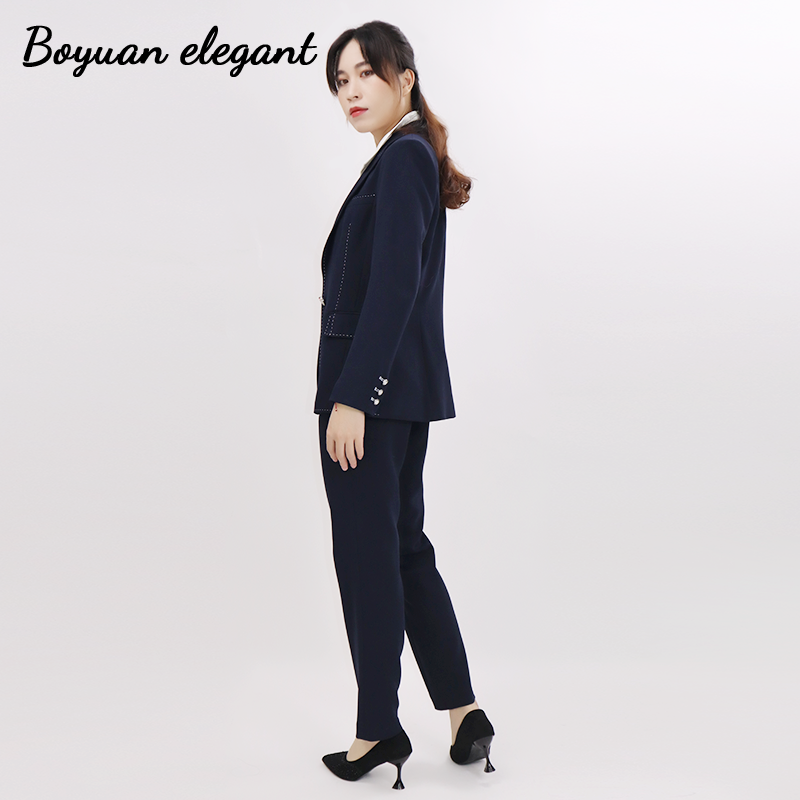 📚 柏媛雅致藏蓝色职业西装套装女面试正装高级感大码修身通勤三件套