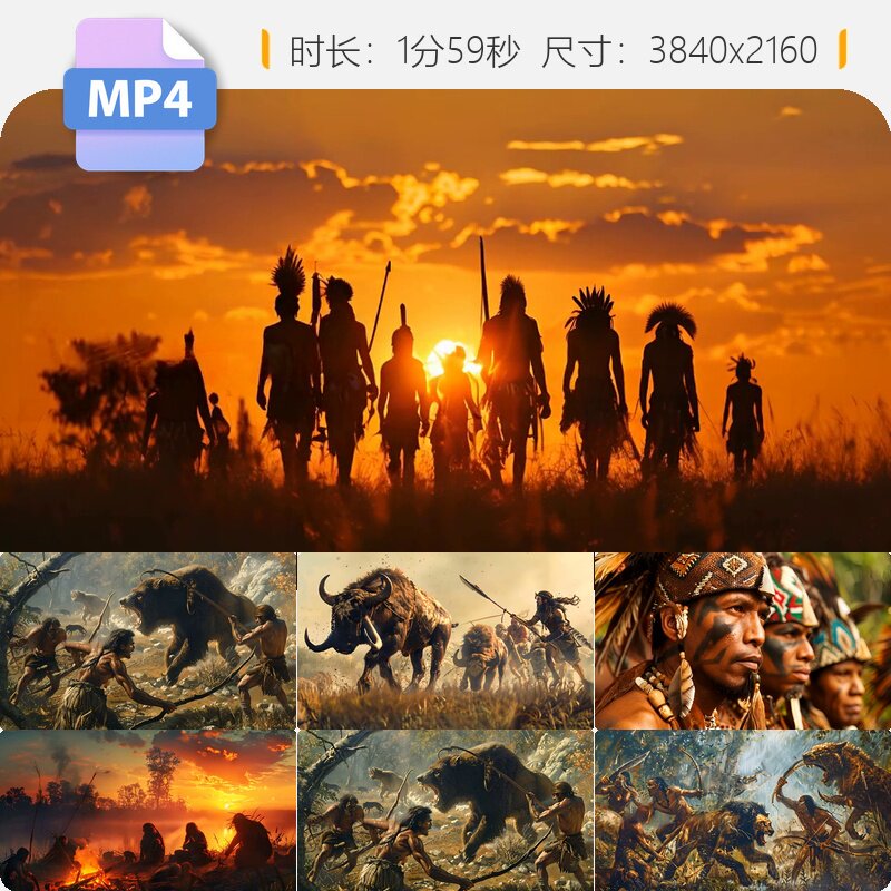 📚 高清原始部落狩猎生活石器时代父系社会穴居野人图腾酋长视频素材