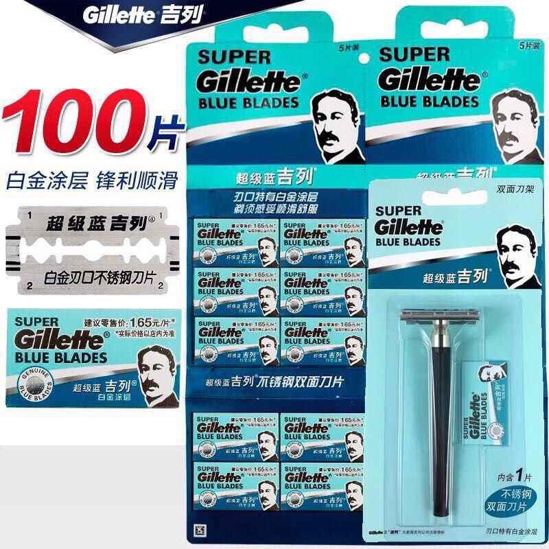 📚 蓝吉列不锈钢双面刀片白金剃须刀片男士吉列老式刮胡刀手动双面刀