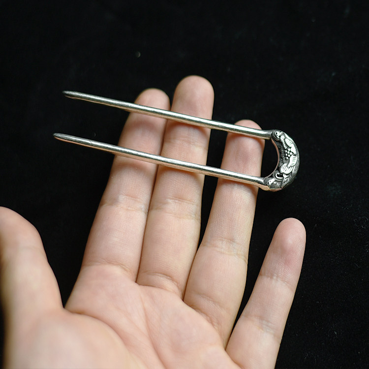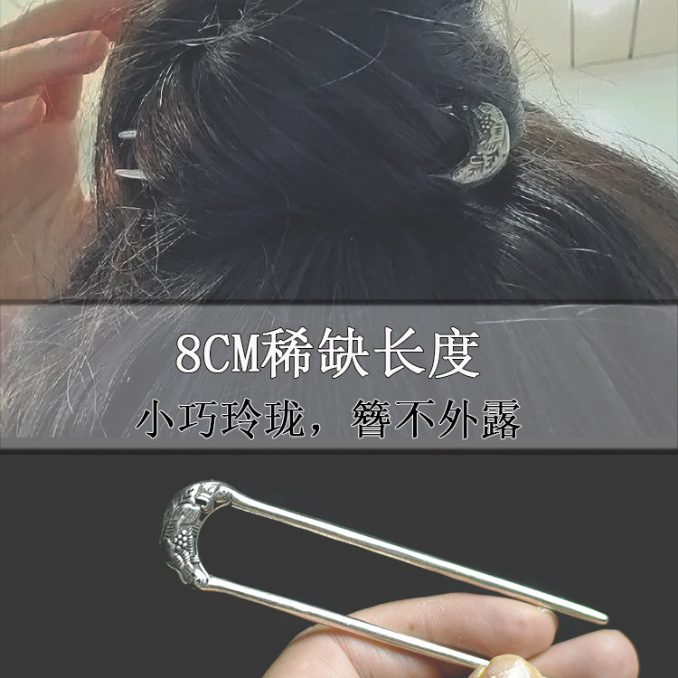 📚 8cm短款~新中式国风发簪925银牡丹U型簪子女复古做旧盘头发饰步摇