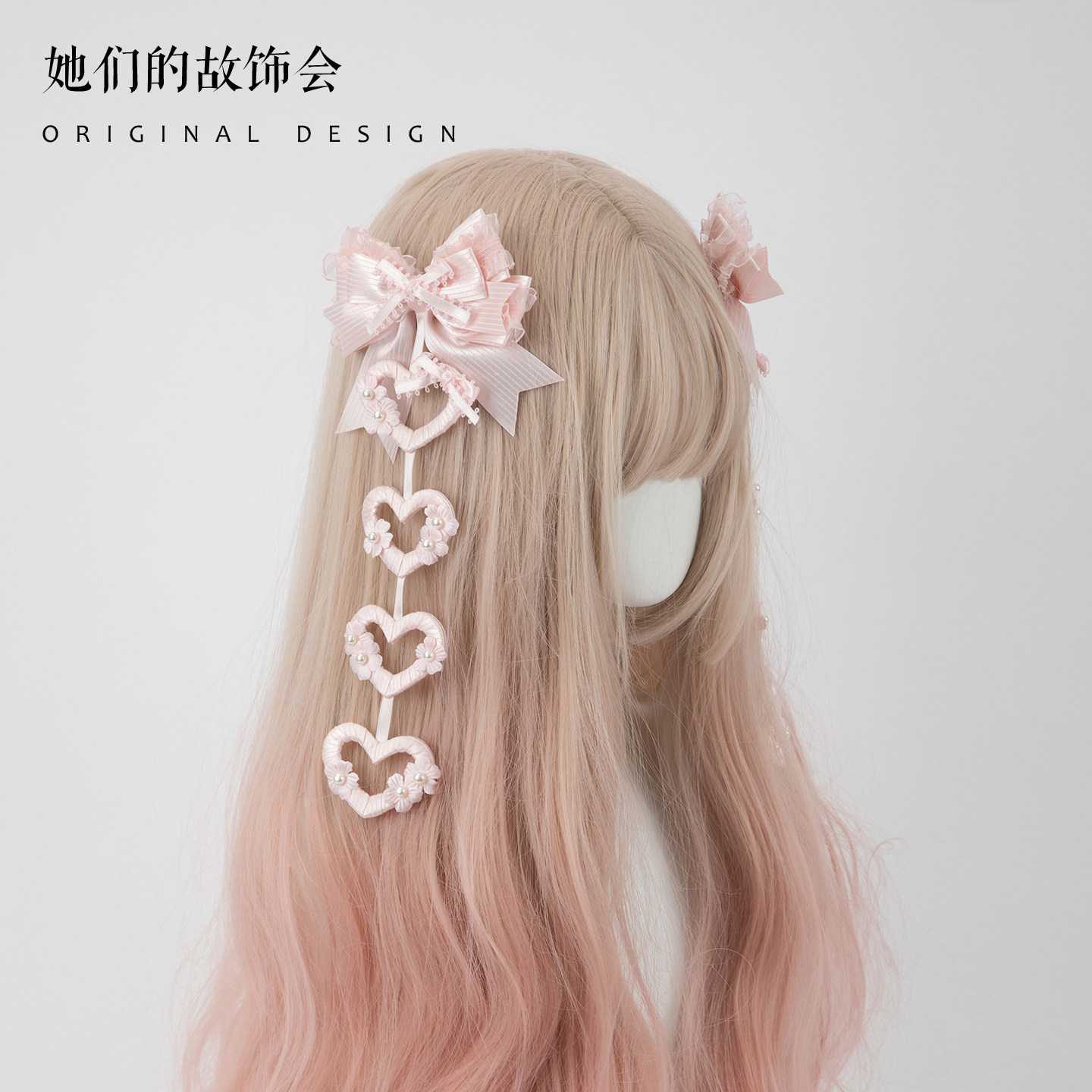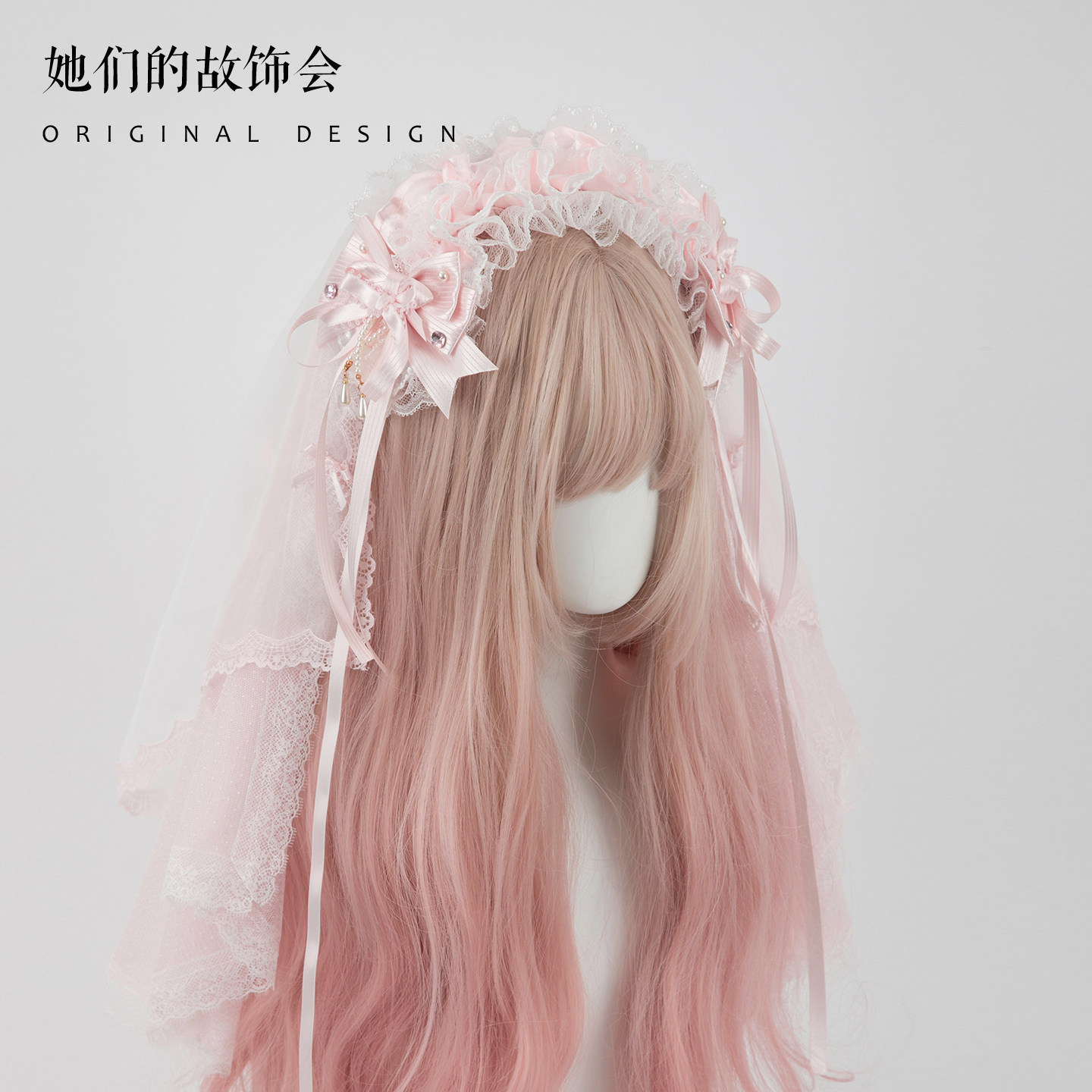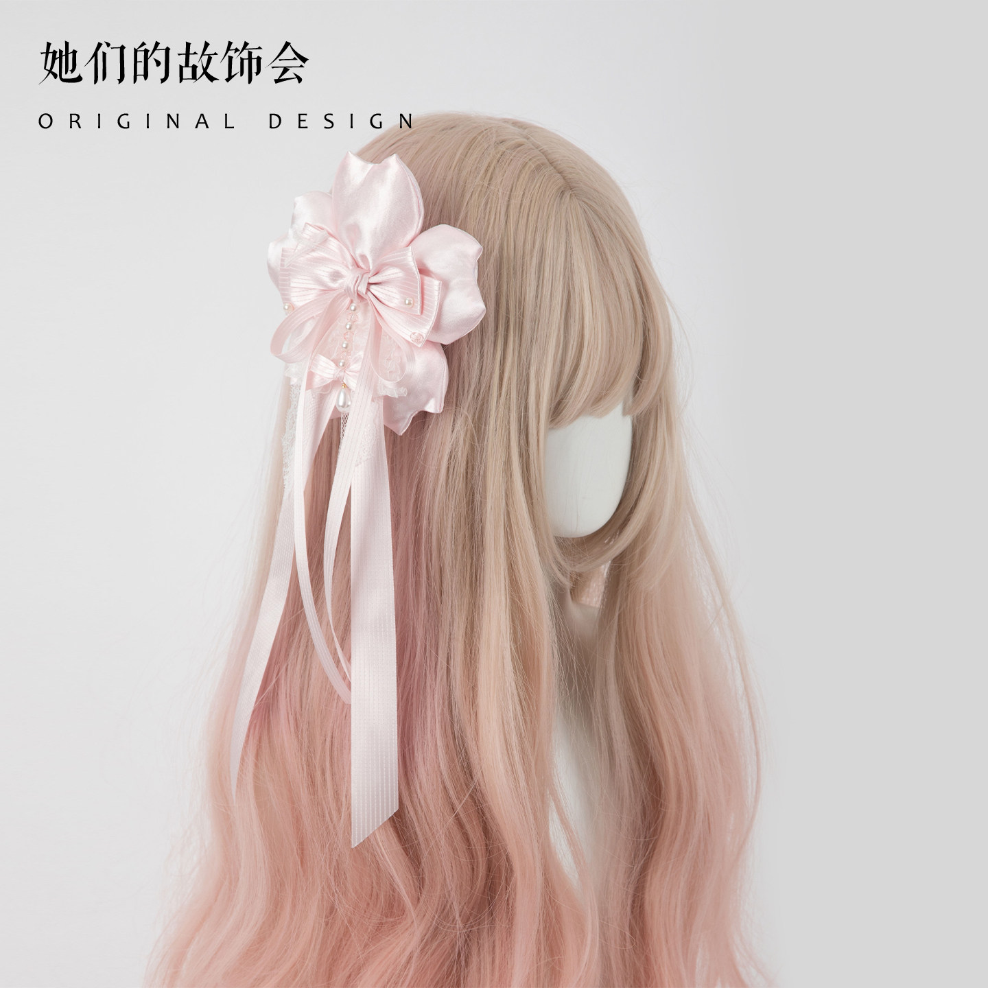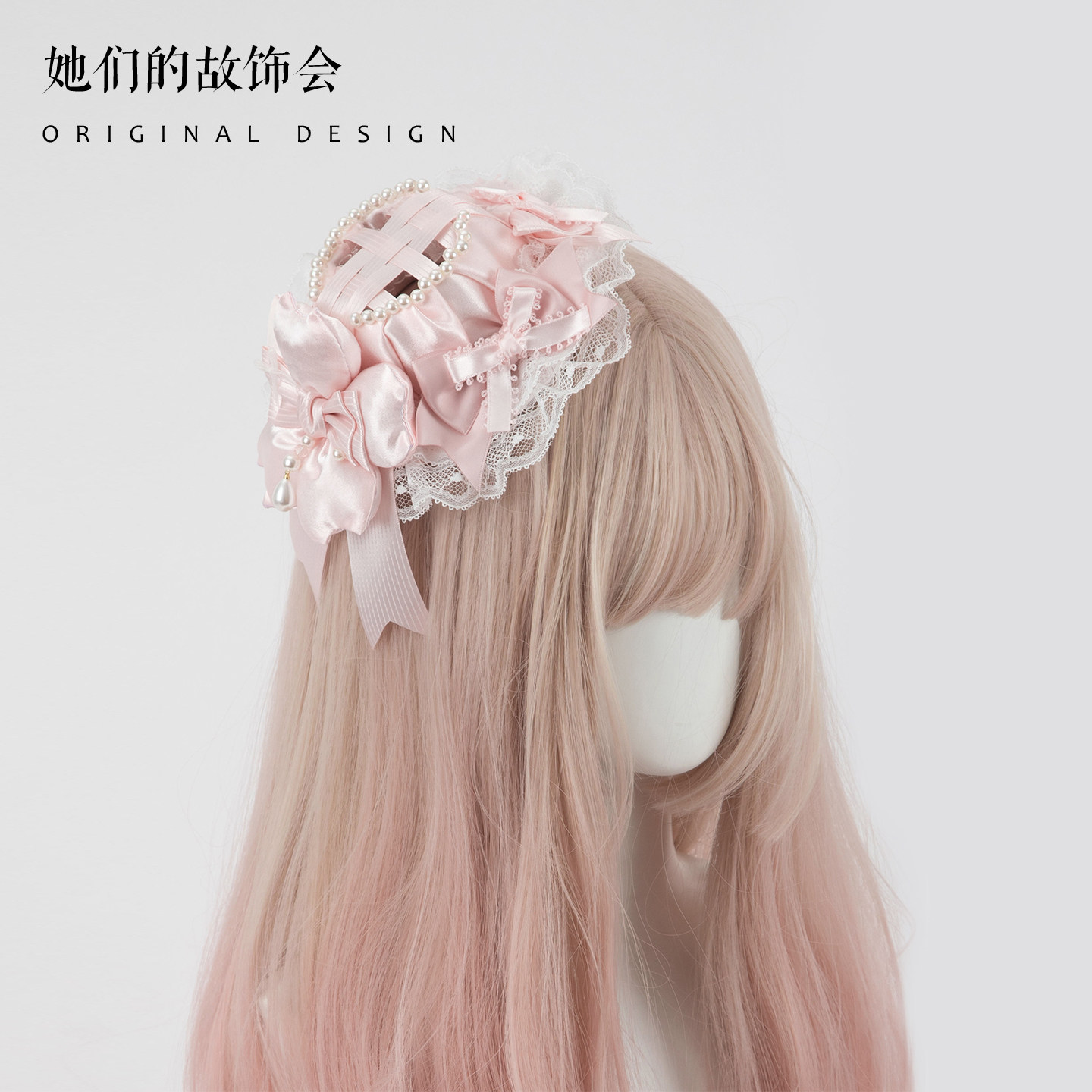 📚 樱花树下的告白粉色Lolita发饰发夹蝴蝶结蕾丝发带边夹发箍kc扁帽