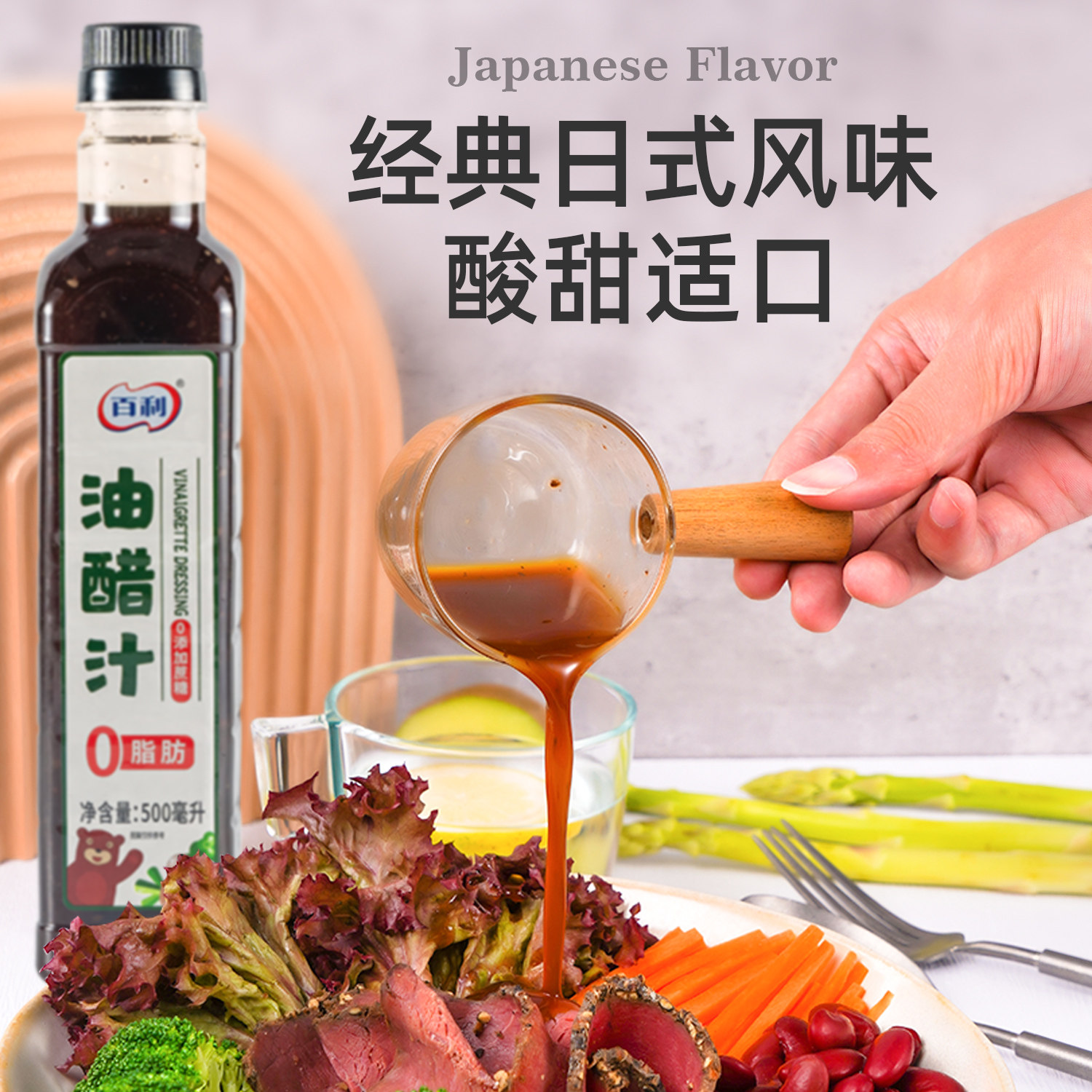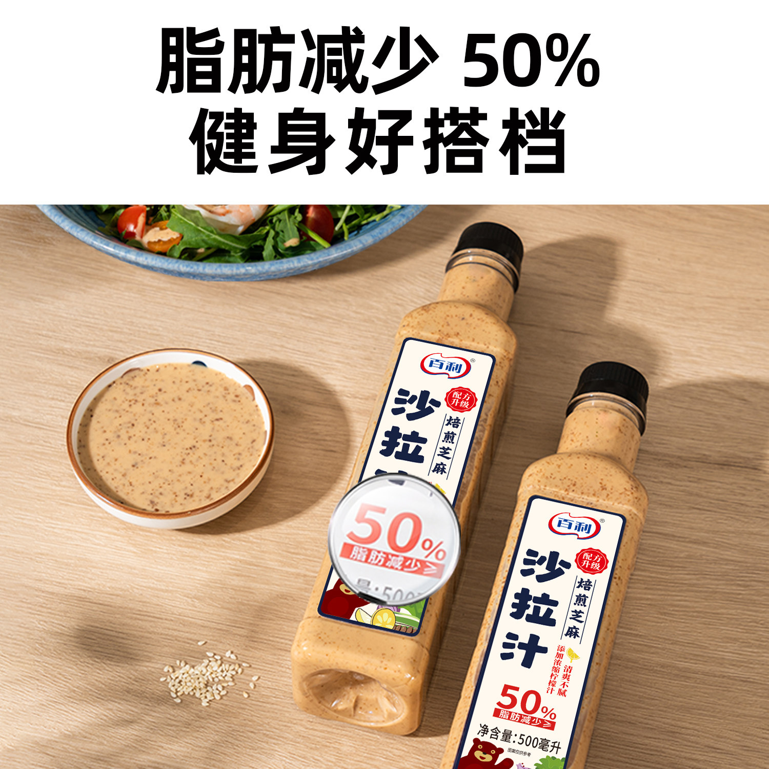 📚 百利油醋汁0脂肪轻食专用500ml大份量蔬菜沙拉汁焙煎芝麻沙拉酱料