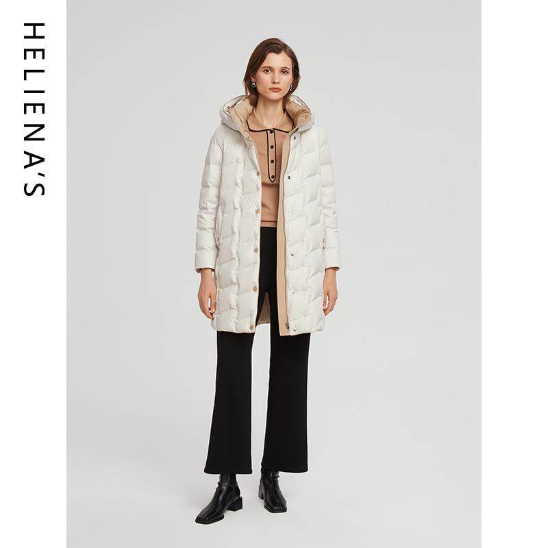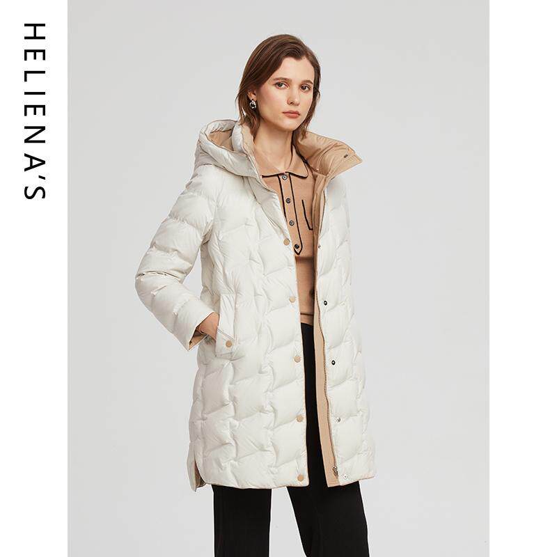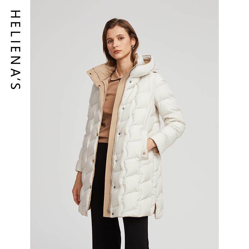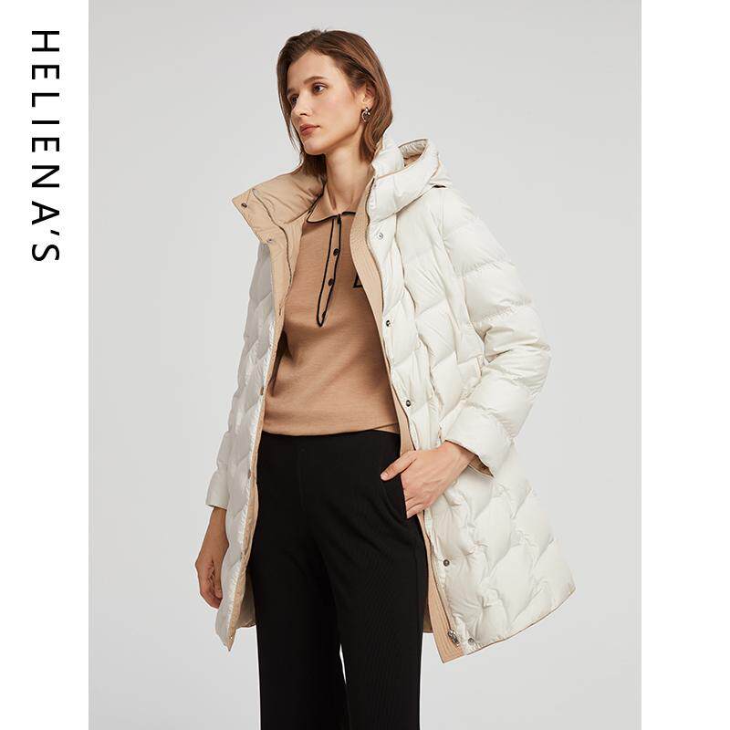 📚 海兰丝商场同款简约百搭撞色中长款连帽鸭绒服羽绒服2024冬新款