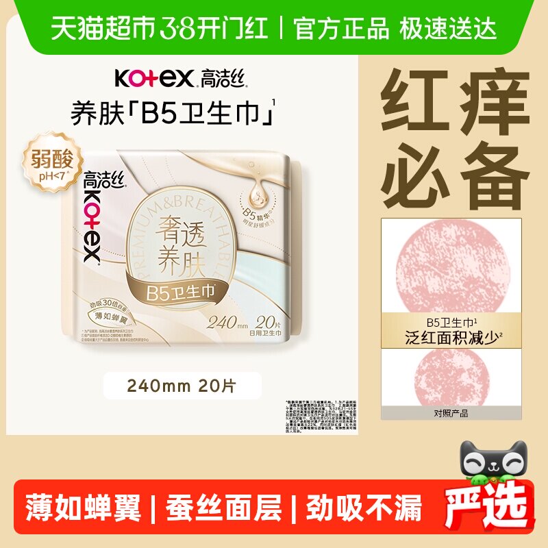 📚 高洁丝奢透养肤B5姨妈巾240mm20片卫生巾透气日用