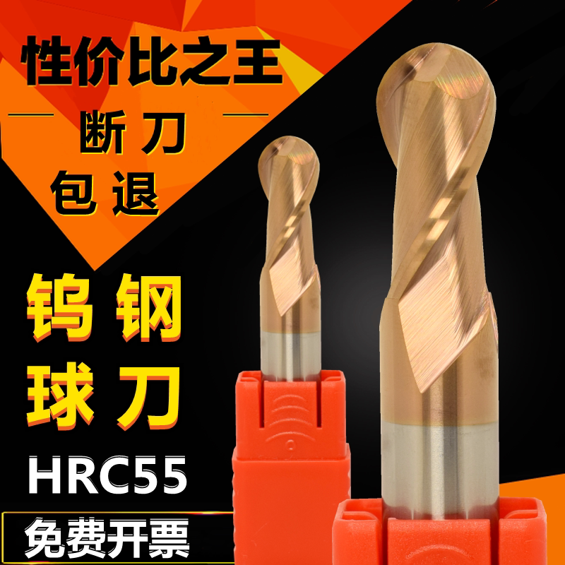 📚 钨钢球形刀55度铣刀2刃合金球头r角涂层钢用加长数控直柄不锈钢刀
