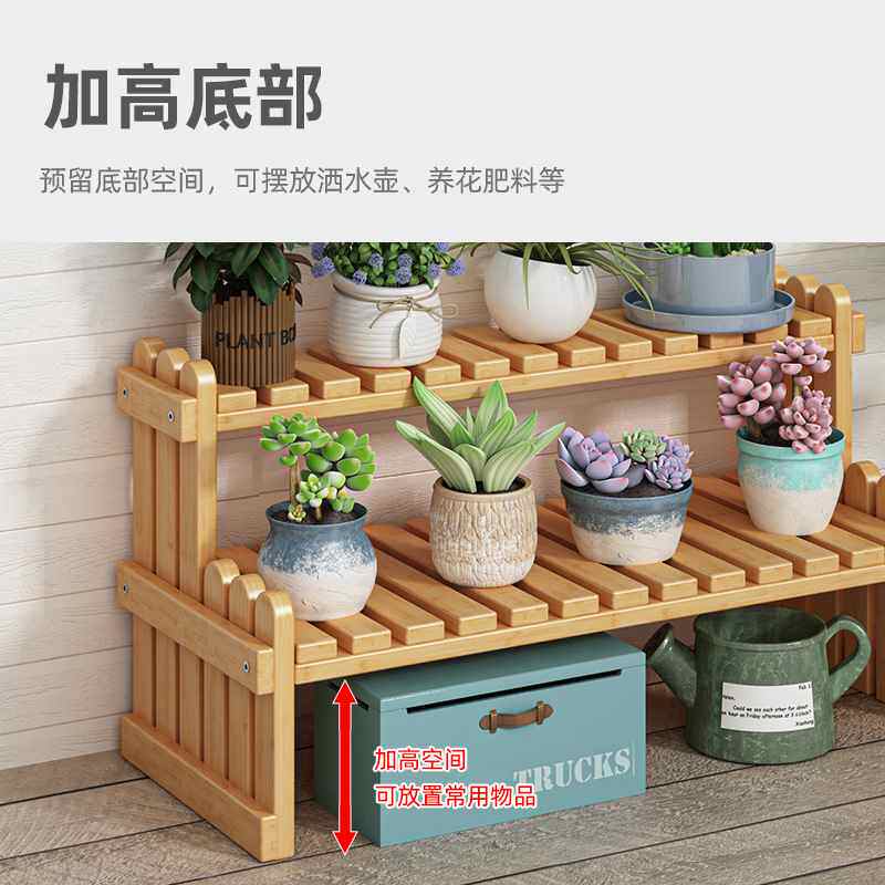 📚 简约多层户外阳台花架落地防腐楠竹实木多肉置物架栅栏式花盆架子