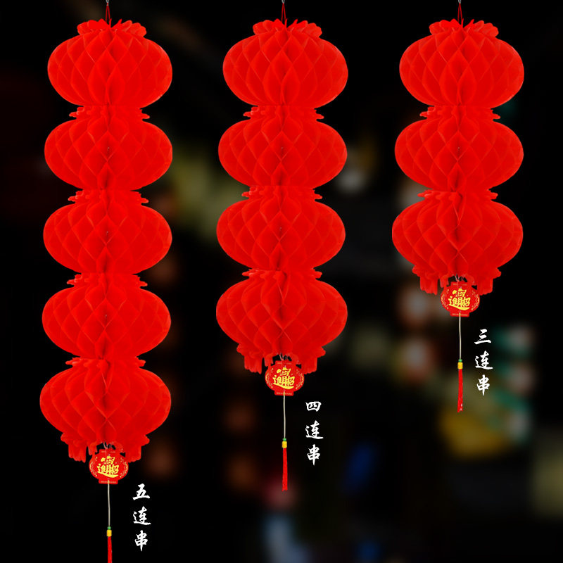 📚 元旦大红灯笼春节新年连串蜂窝小红灯笼塑纸灯笼节日庆典喜庆装饰