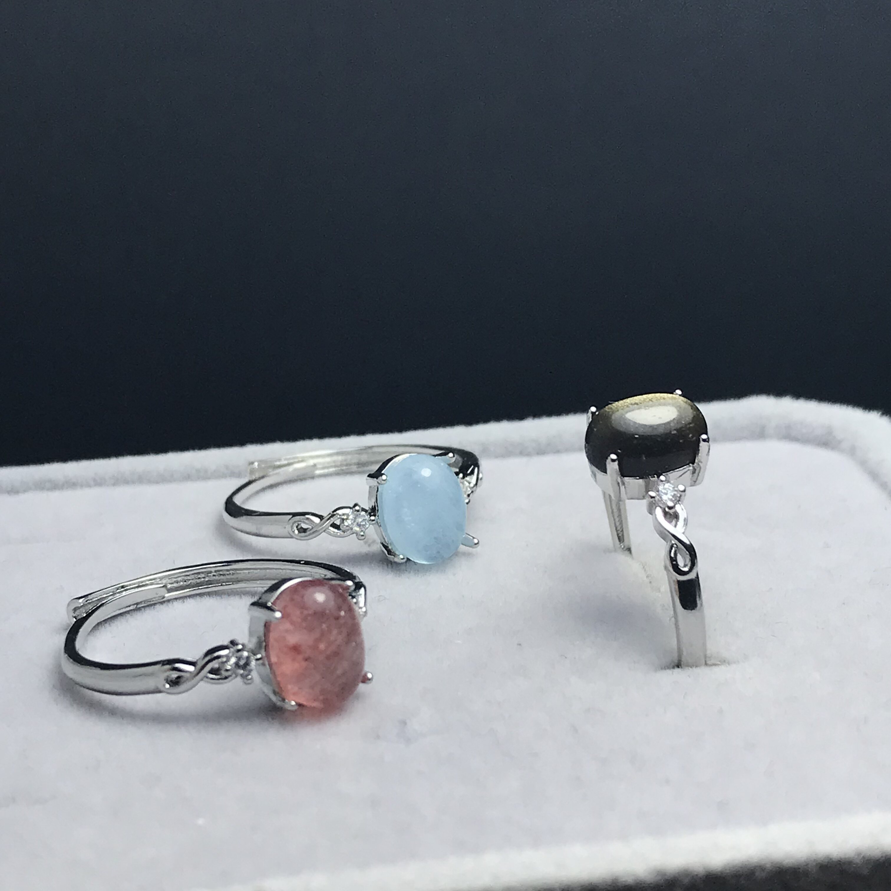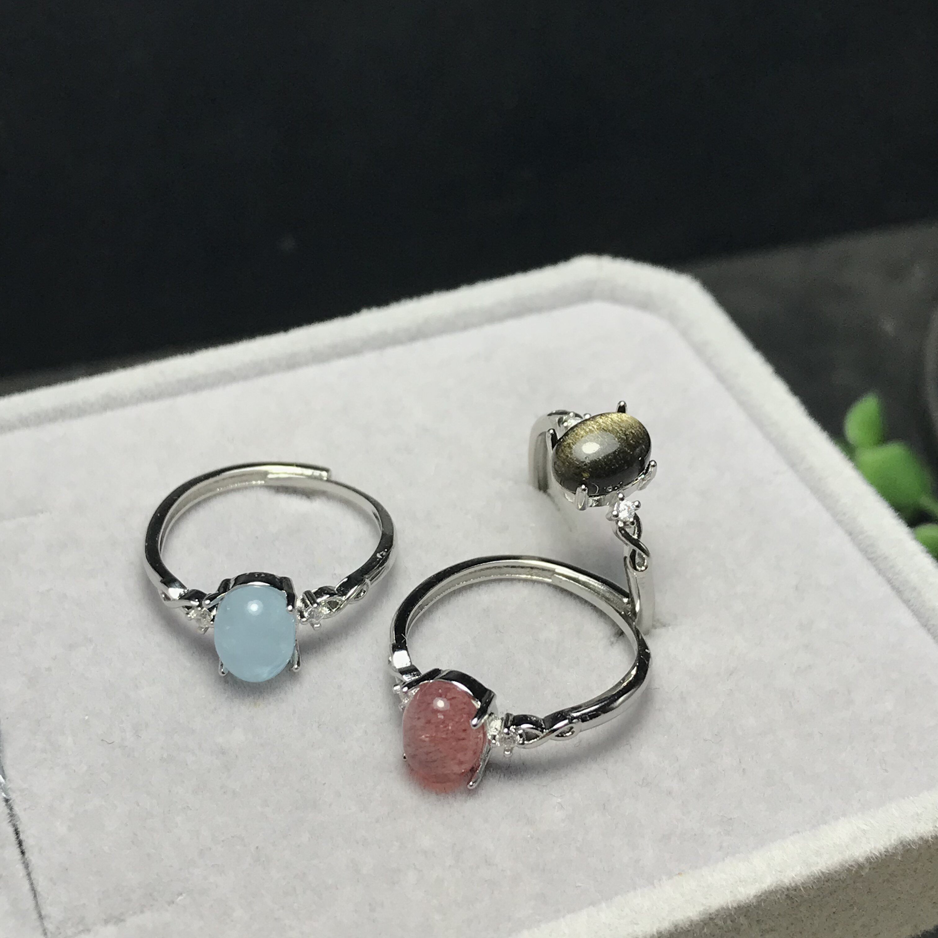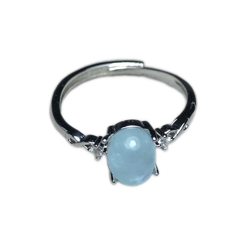 📚 A075天然海蓝宝金曜6*8宝石戒指活口可调节白铜托非纯银托ZC成品