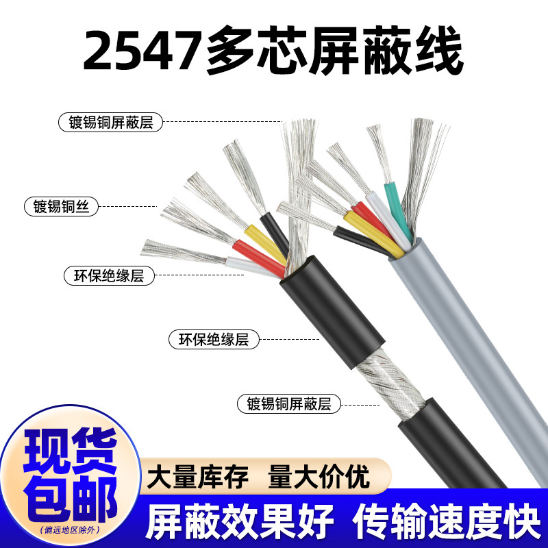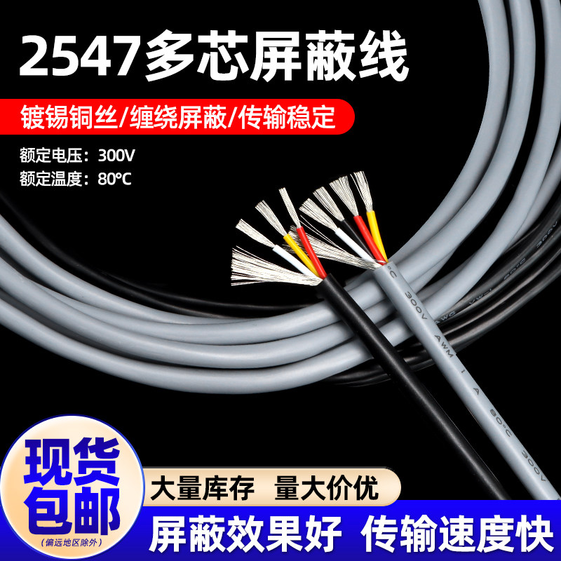 📚 2547多芯屏蔽线2/3/4/6/8芯USB信号线音频数据线20 16AWG抗干扰