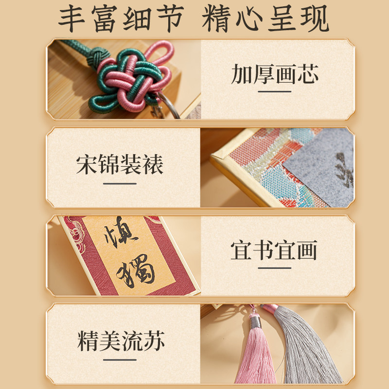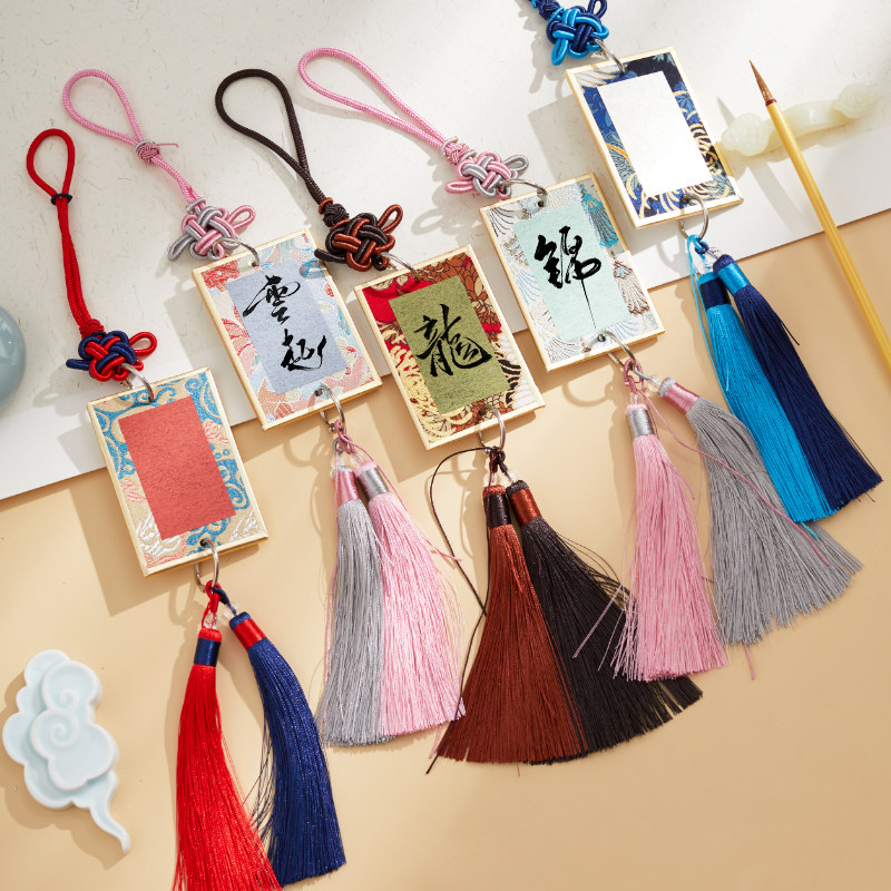 📚 六品堂宋锦硬卡挂件国风宣纸书签迷你卡纸福卡手写书法文创diy礼物挂饰卡彩色蜡染宣纸创作摆件车挂卡钥匙扣