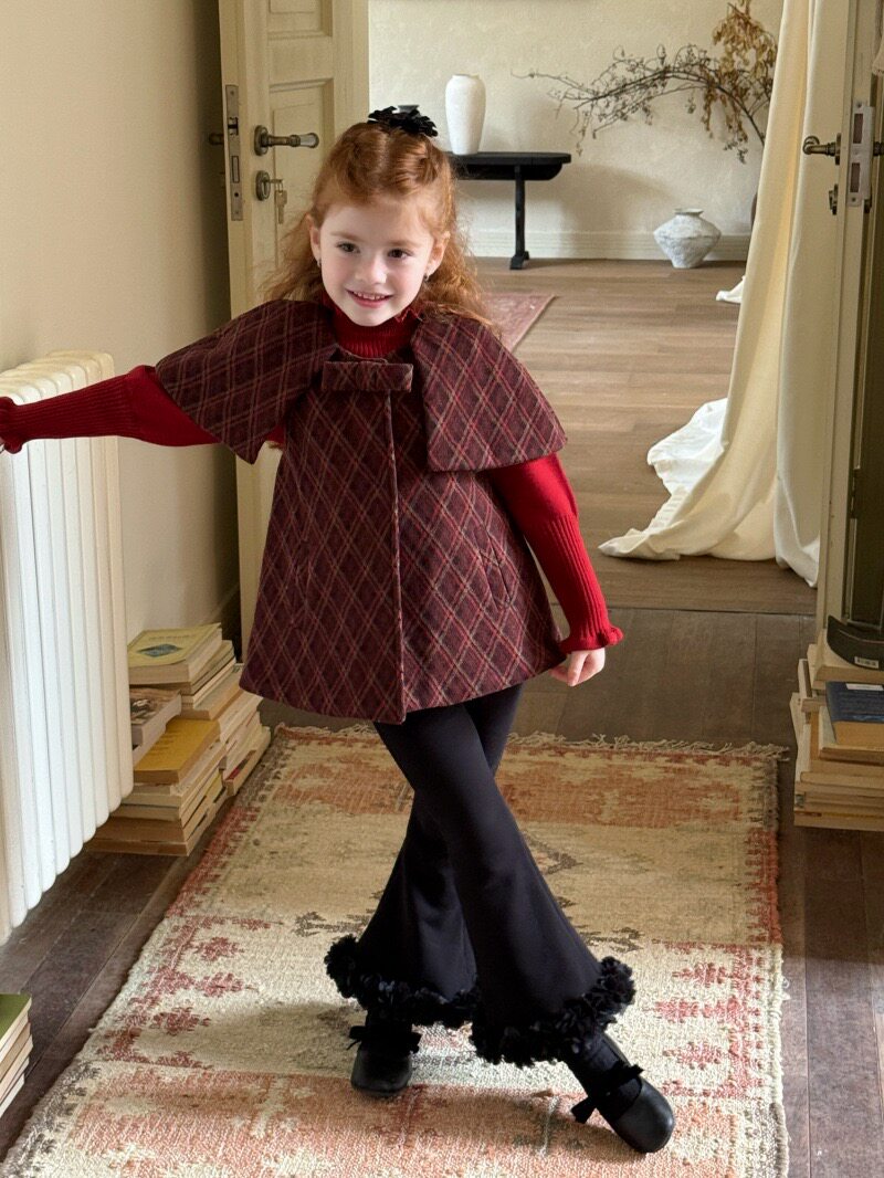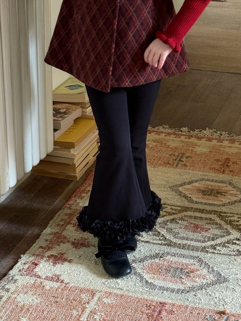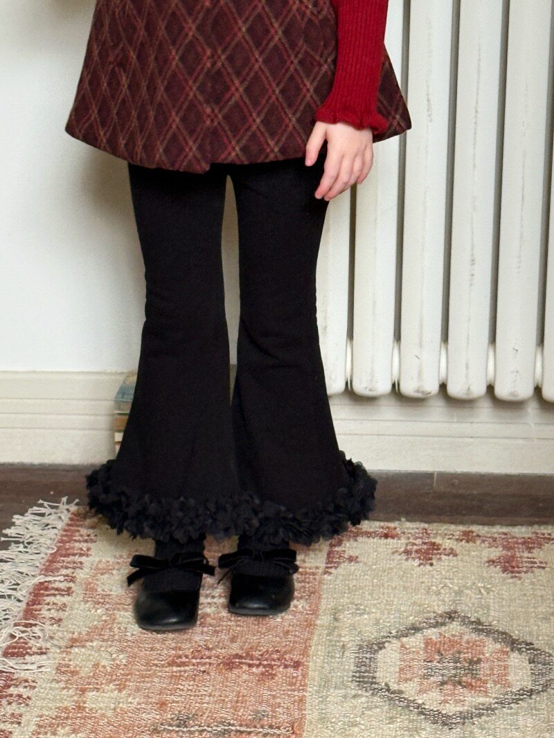 📚 冬季韩版儿童加绒弹力喇叭裤 女童花边阔腿裤子