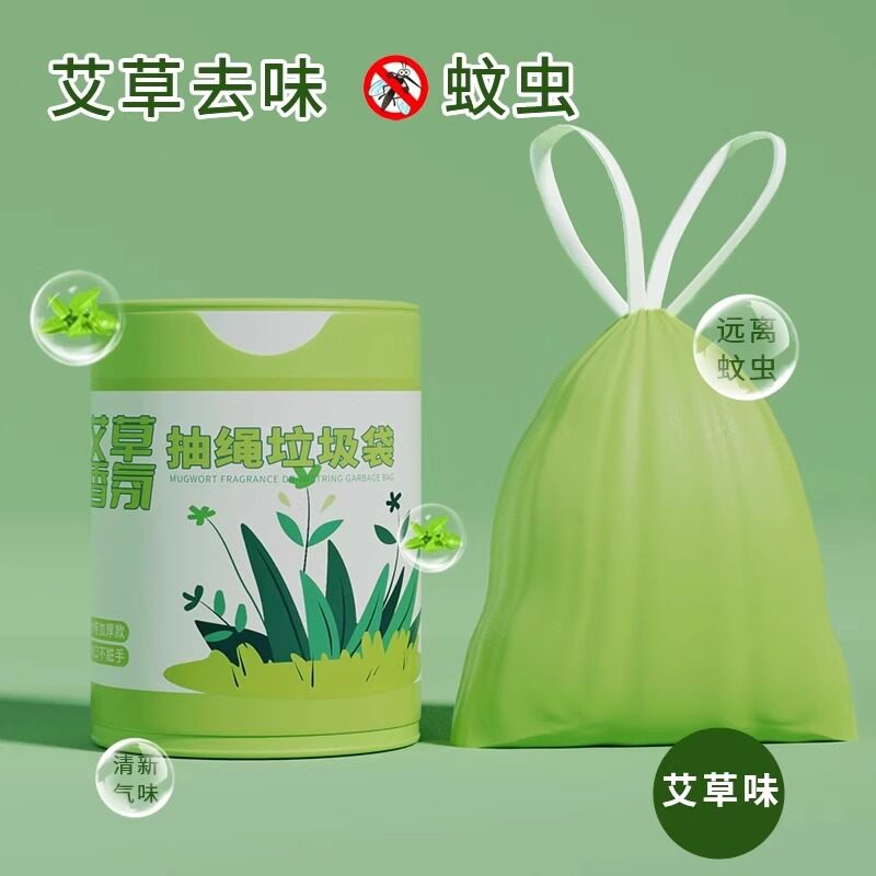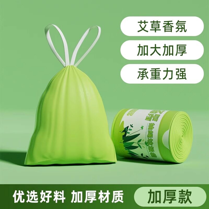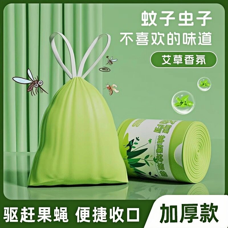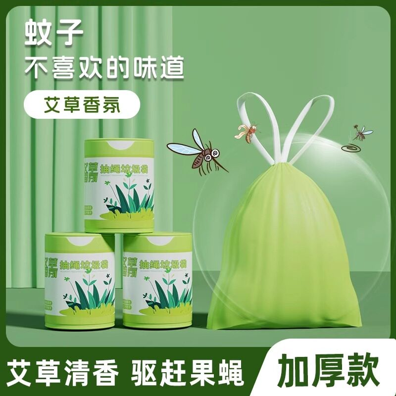 📚 艾草垃圾袋防臭家用加厚手提式抽绳厨房专用耐用大卷驱蚊袋不易破