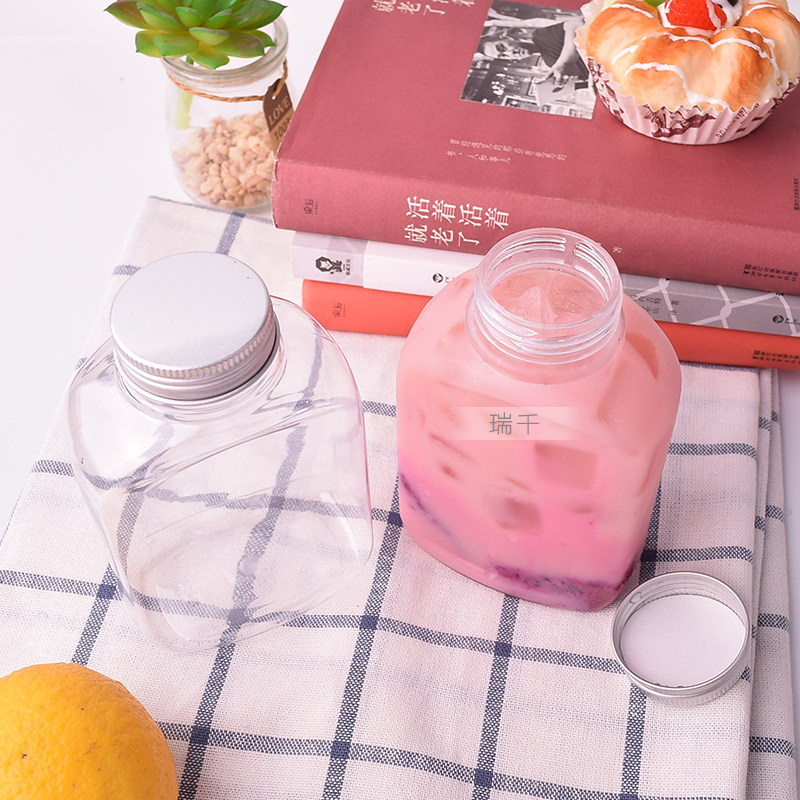 📚 一次性饮料瓶350ml塑料瓶带盖鲜奶外卖奶茶瓶冷泡瓶塑料果汁打包