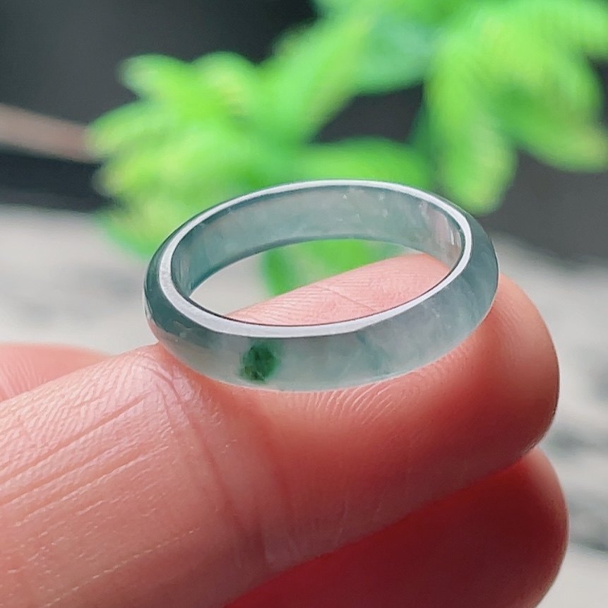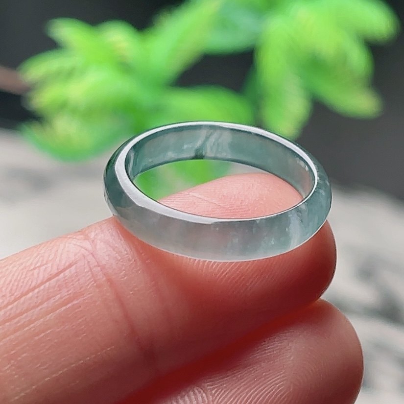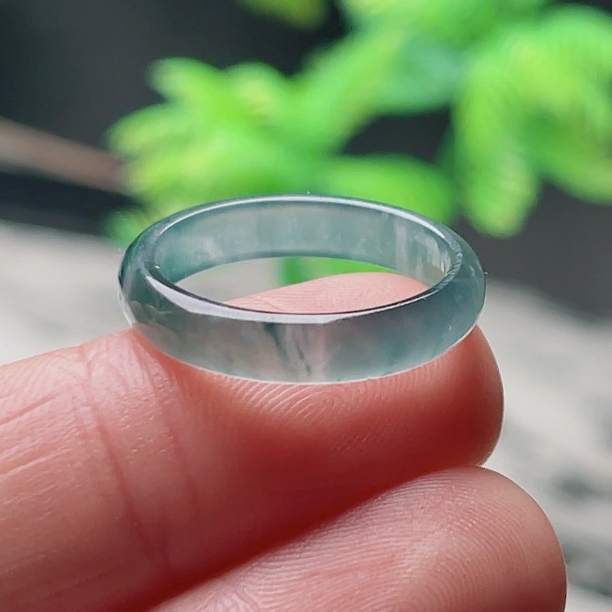 📚 14号正品A货玉戒指男女天然翡翠冰种飘绿花指环素圈玉戒圈尾戒