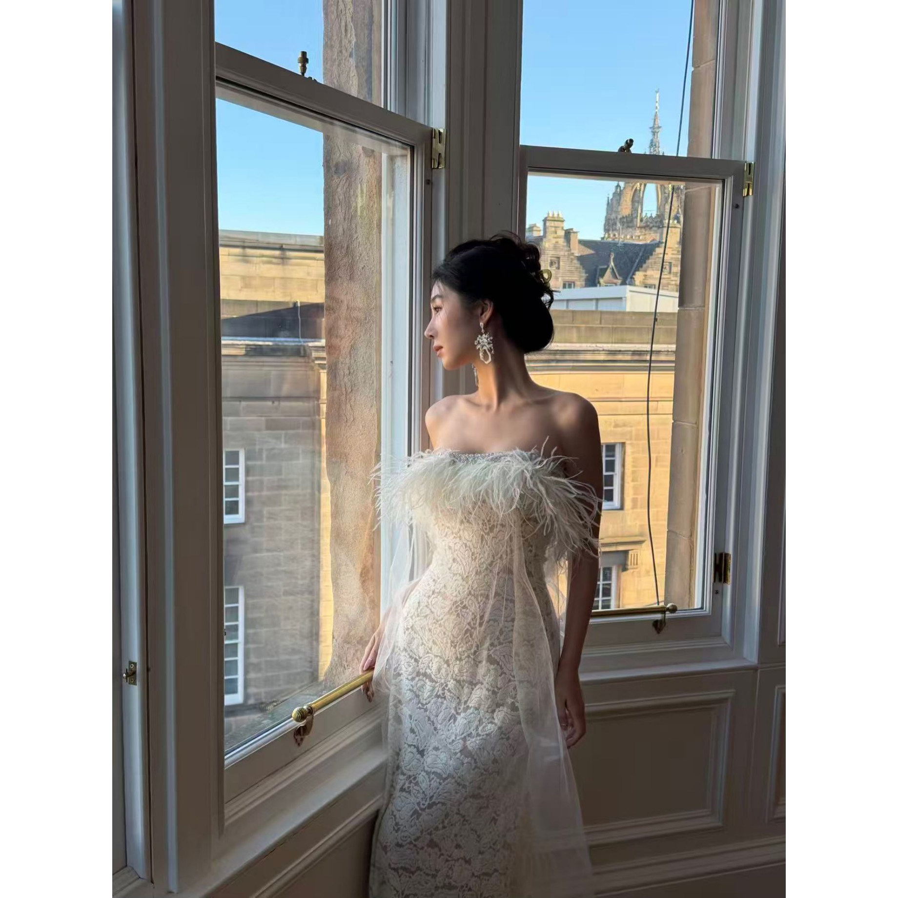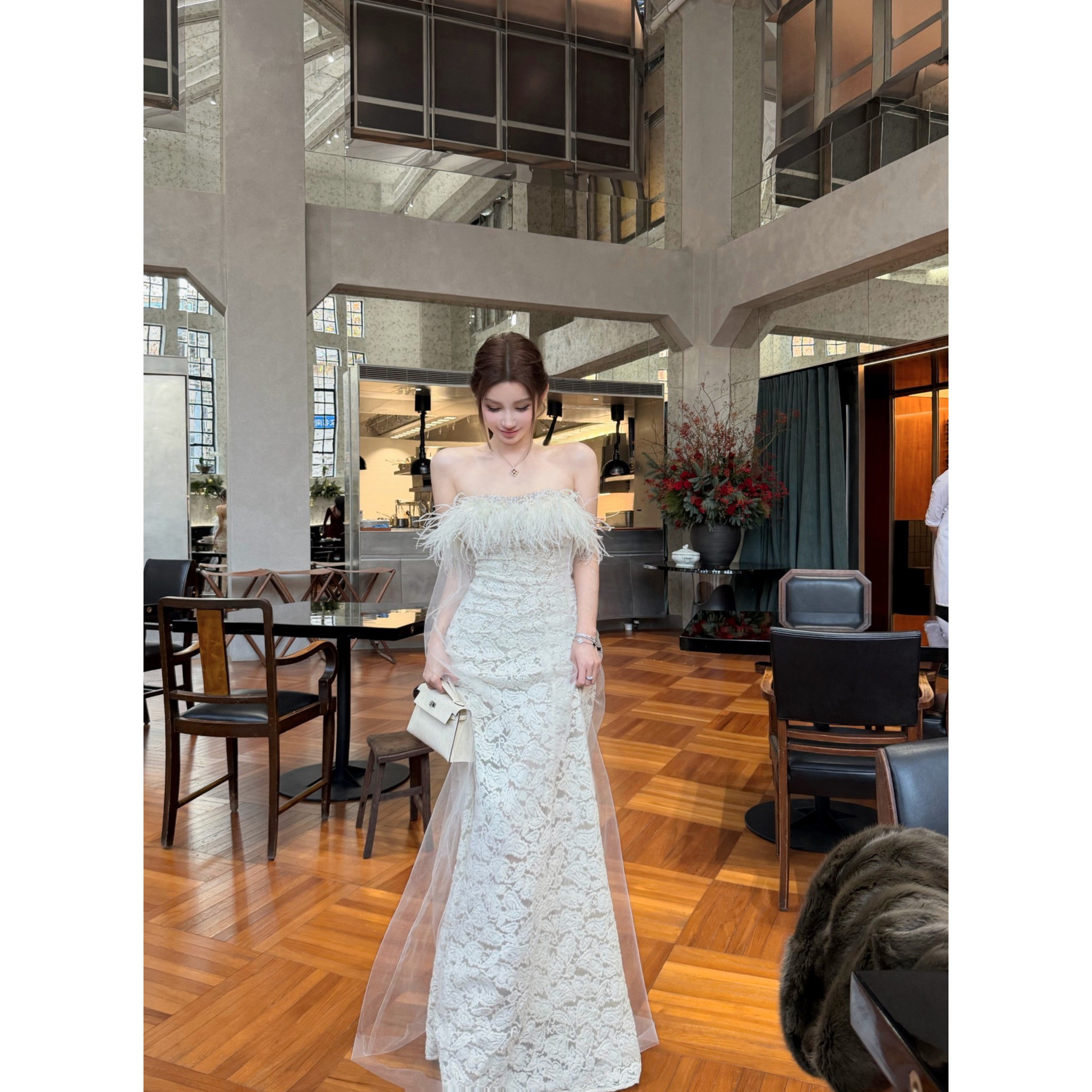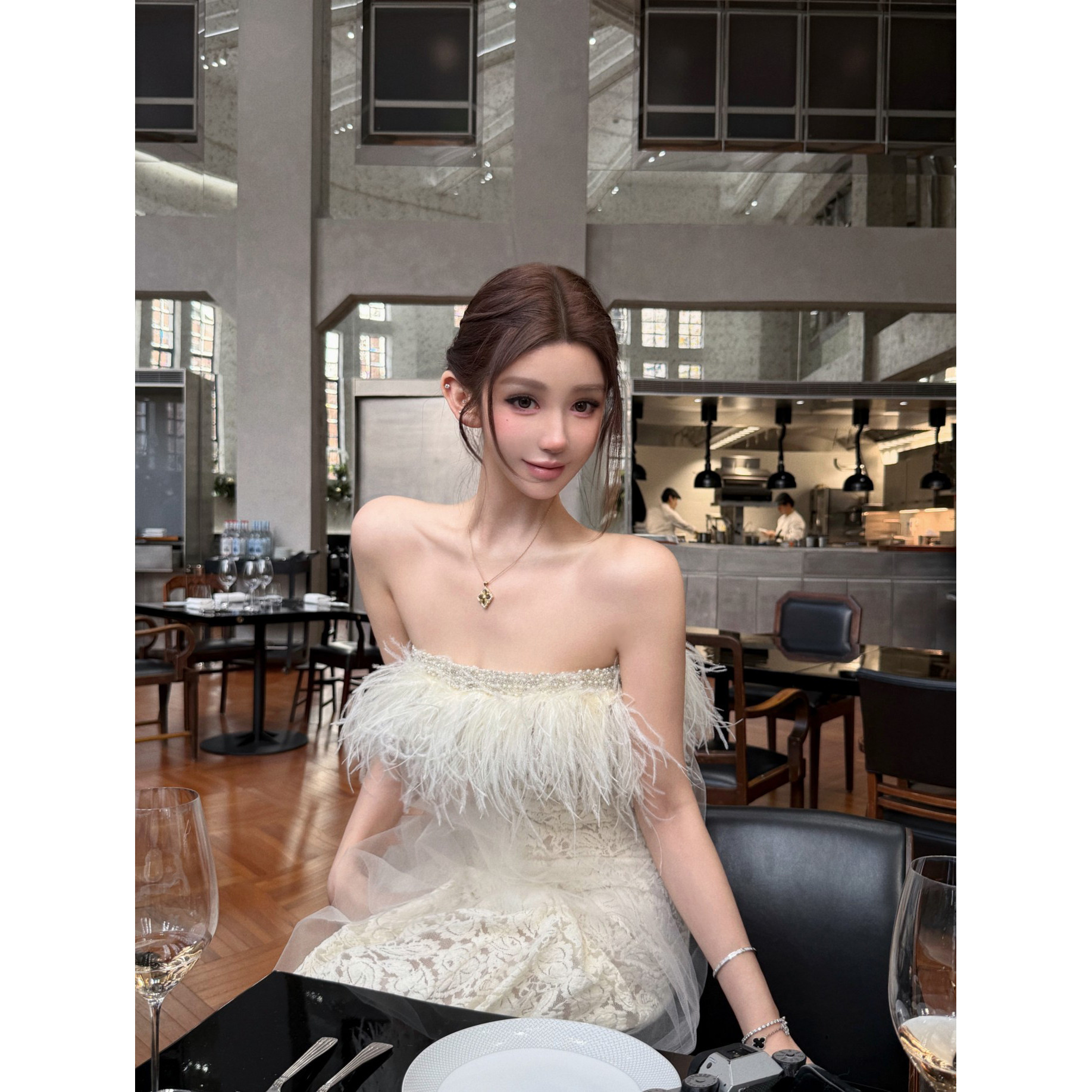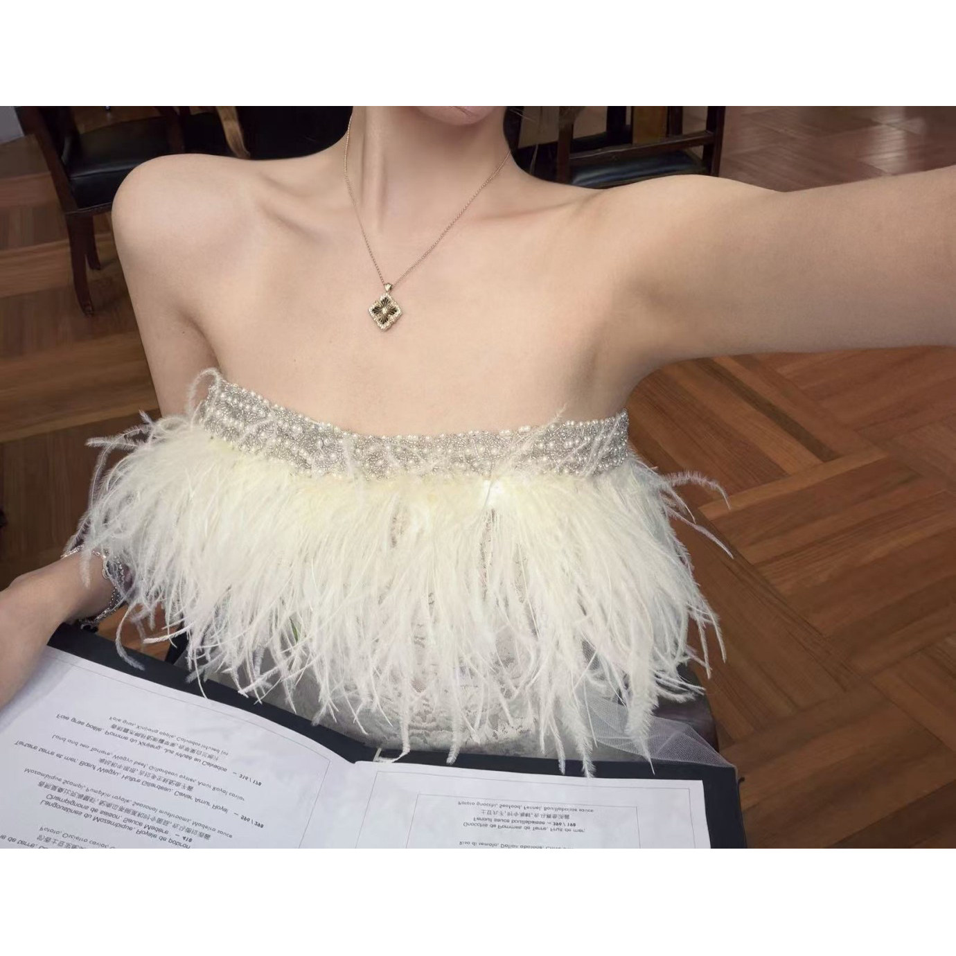 📚 【现货】Tension Archive 清透网纱针织紧身羽毛钉珠抹胸裙