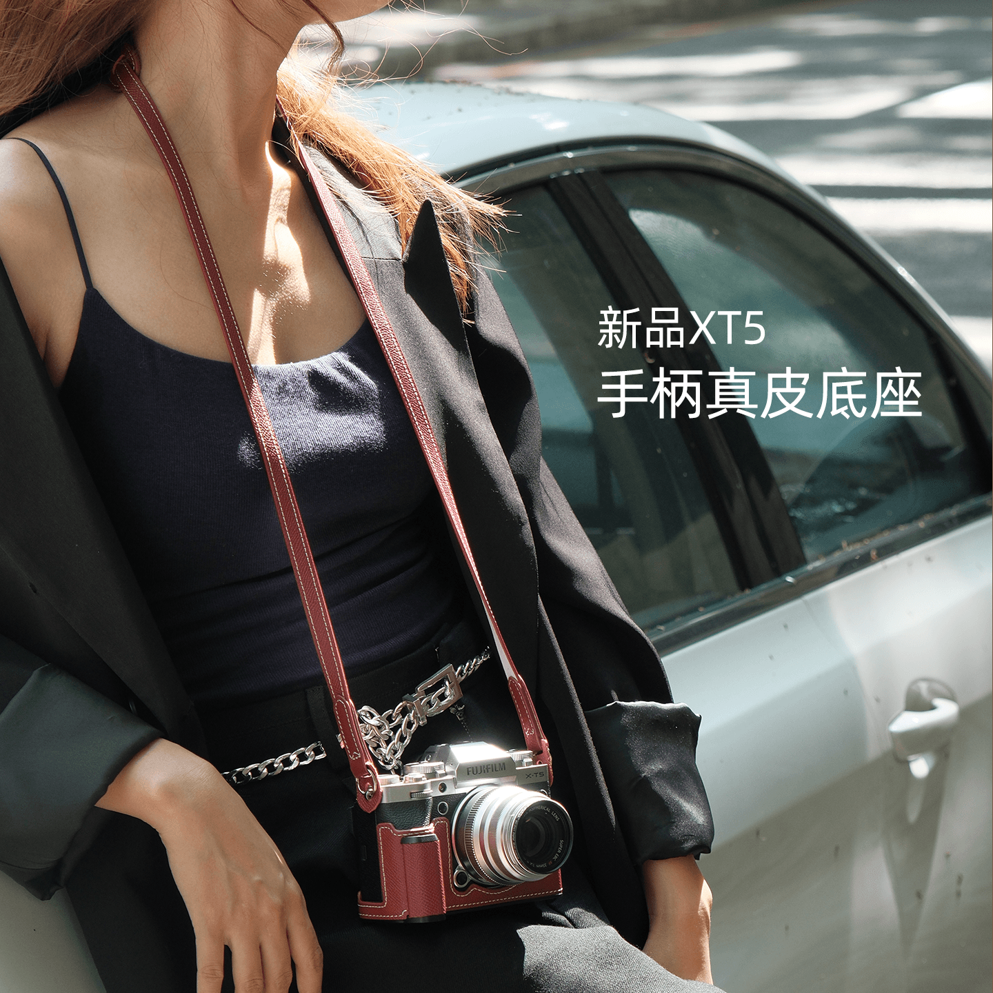 📚 富士xt5手柄红色保护套xt30三代手柄xt50真皮套xe5相机套xm5底座