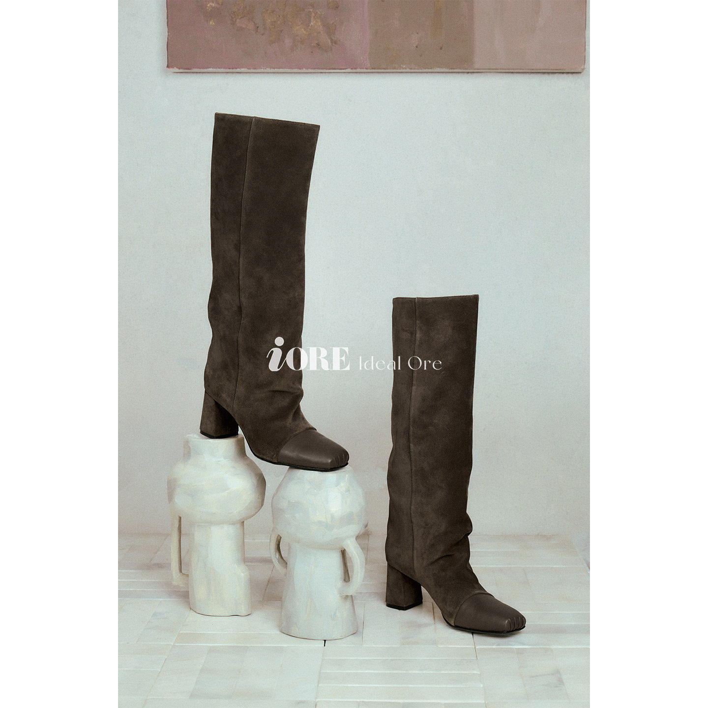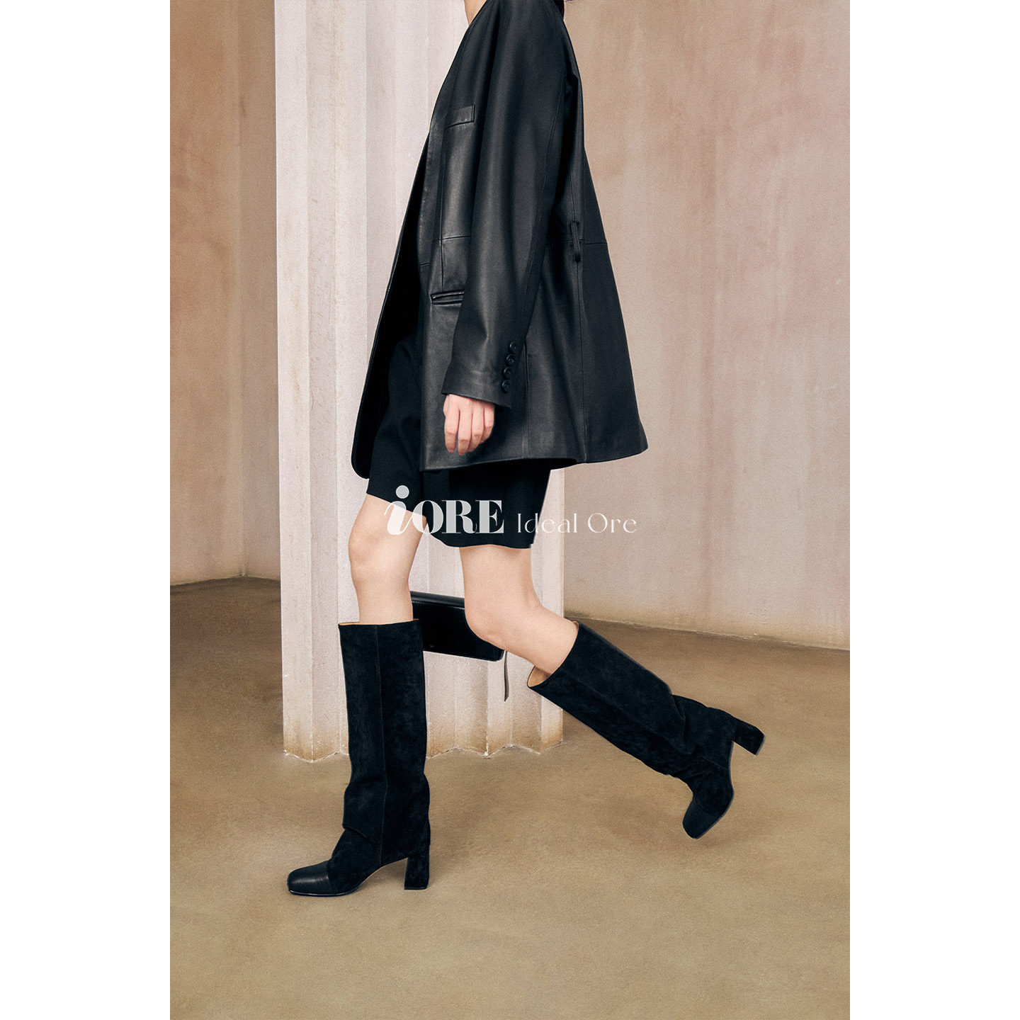 📚 IORE理想矿石设计原创 刚柔相生 自然堆叠粗高跟及膝靴芭蕾裤腿靴