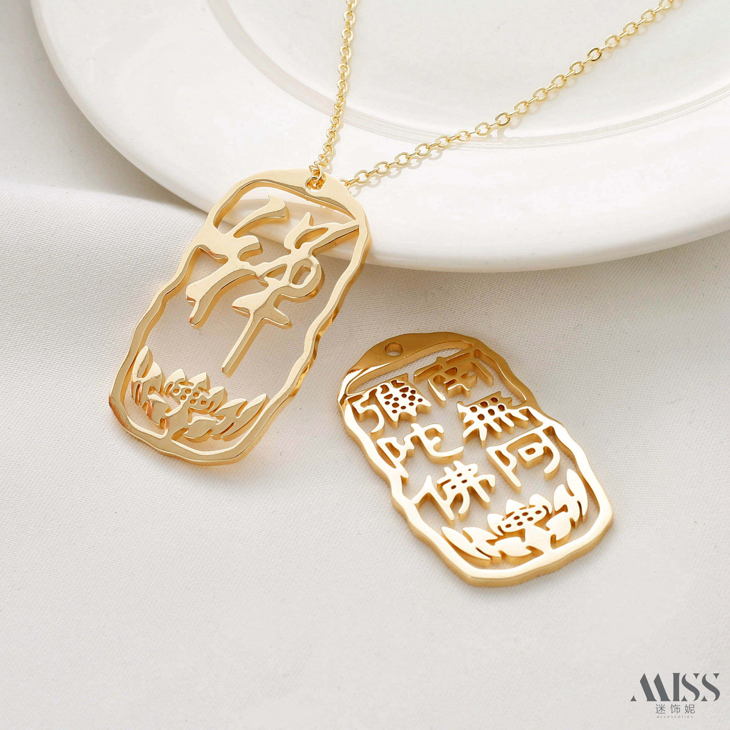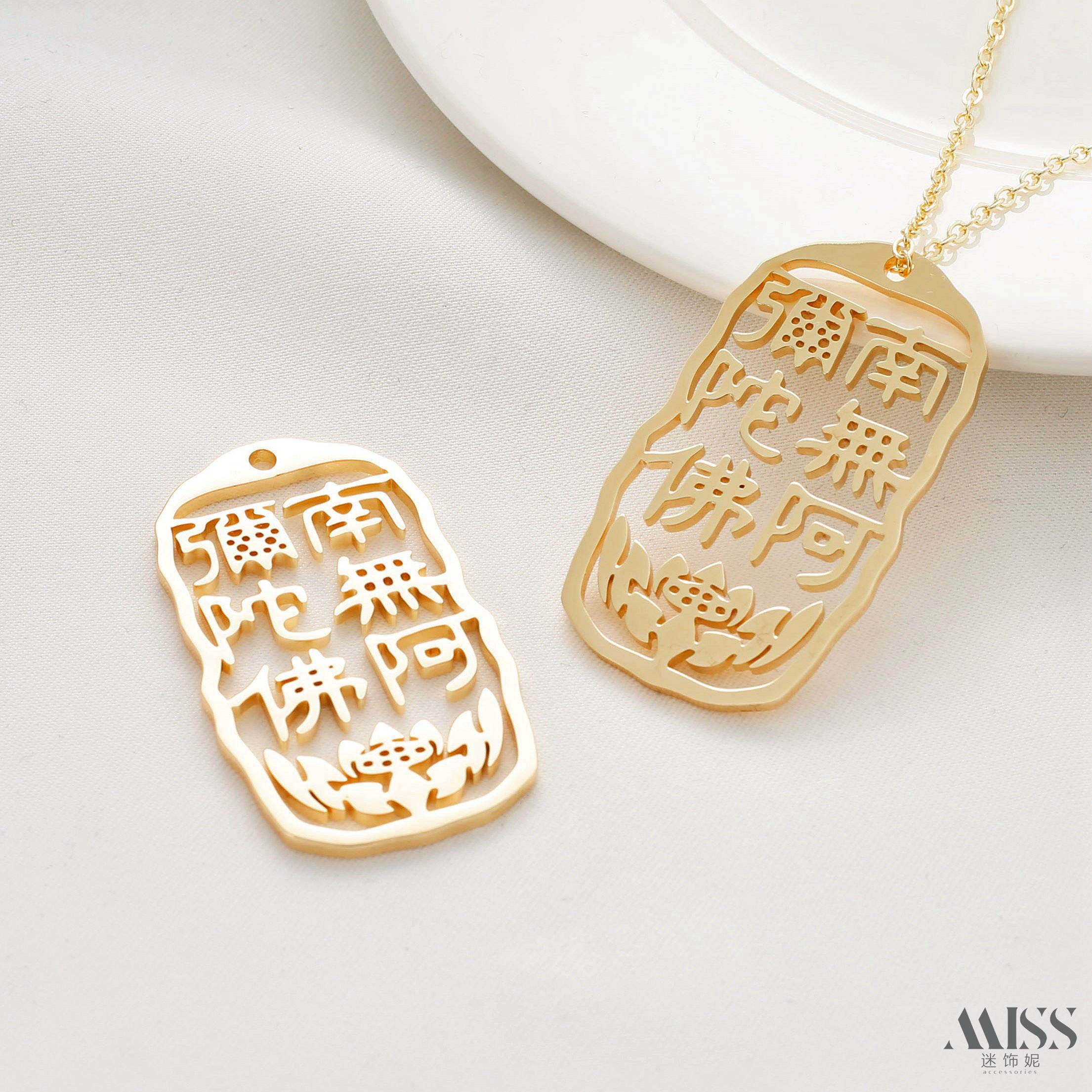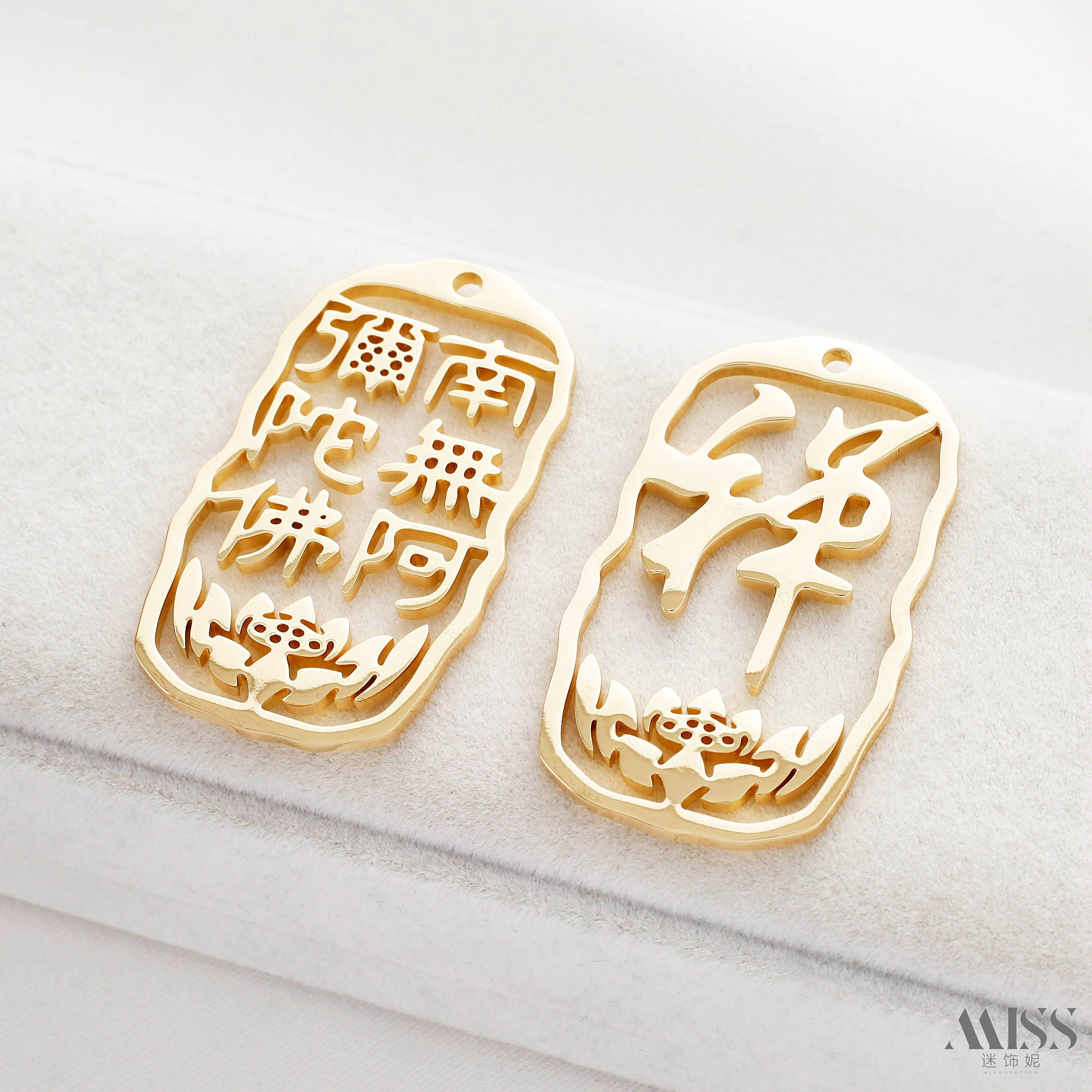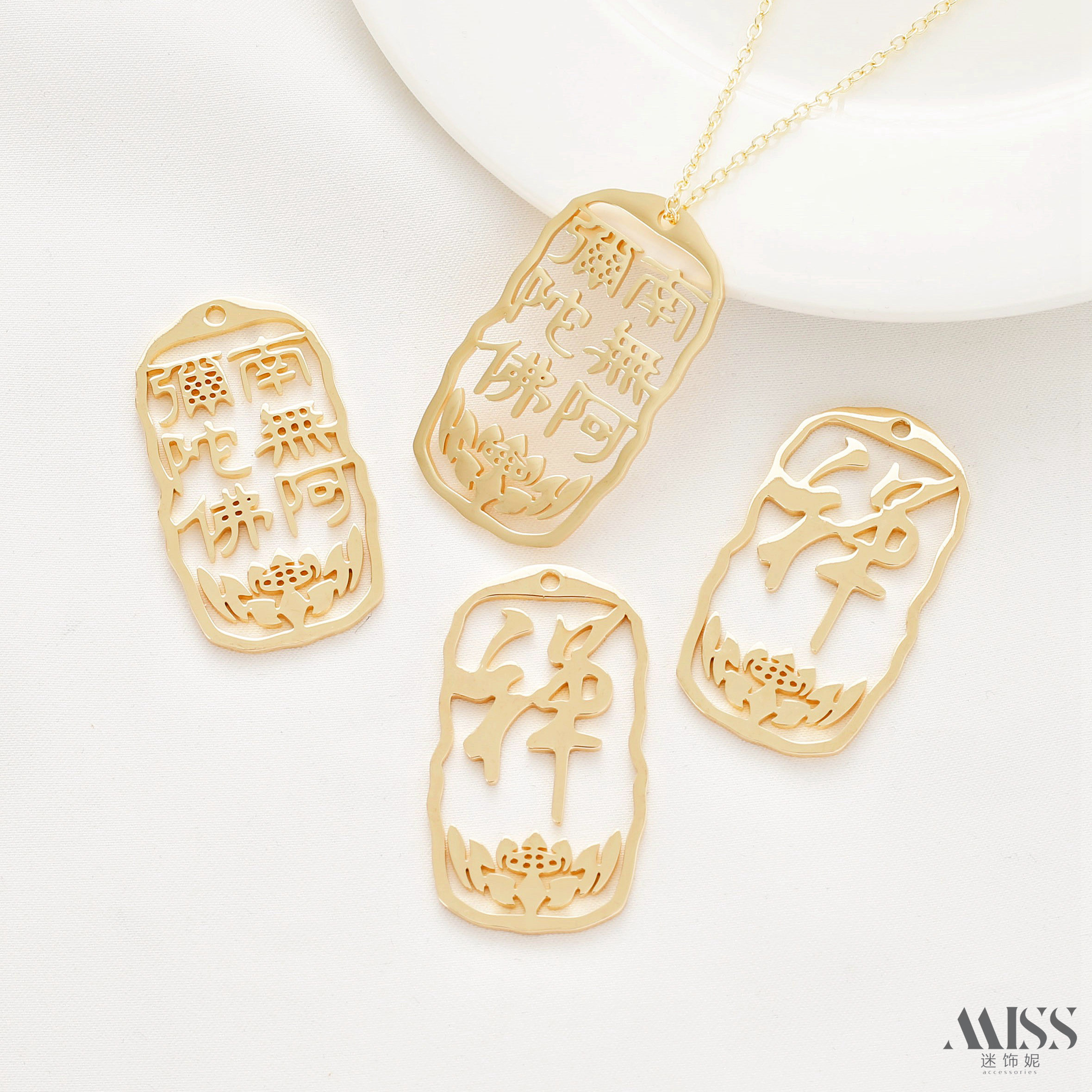📚 14K包金保色南无阿弥陀佛牌禅字吊牌diy毛衣链钥匙扣项链吊饰配件