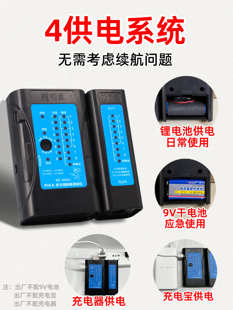📚 精明鼠多功能网线测试仪水晶头单头检测器网络测线仪poe对线通断