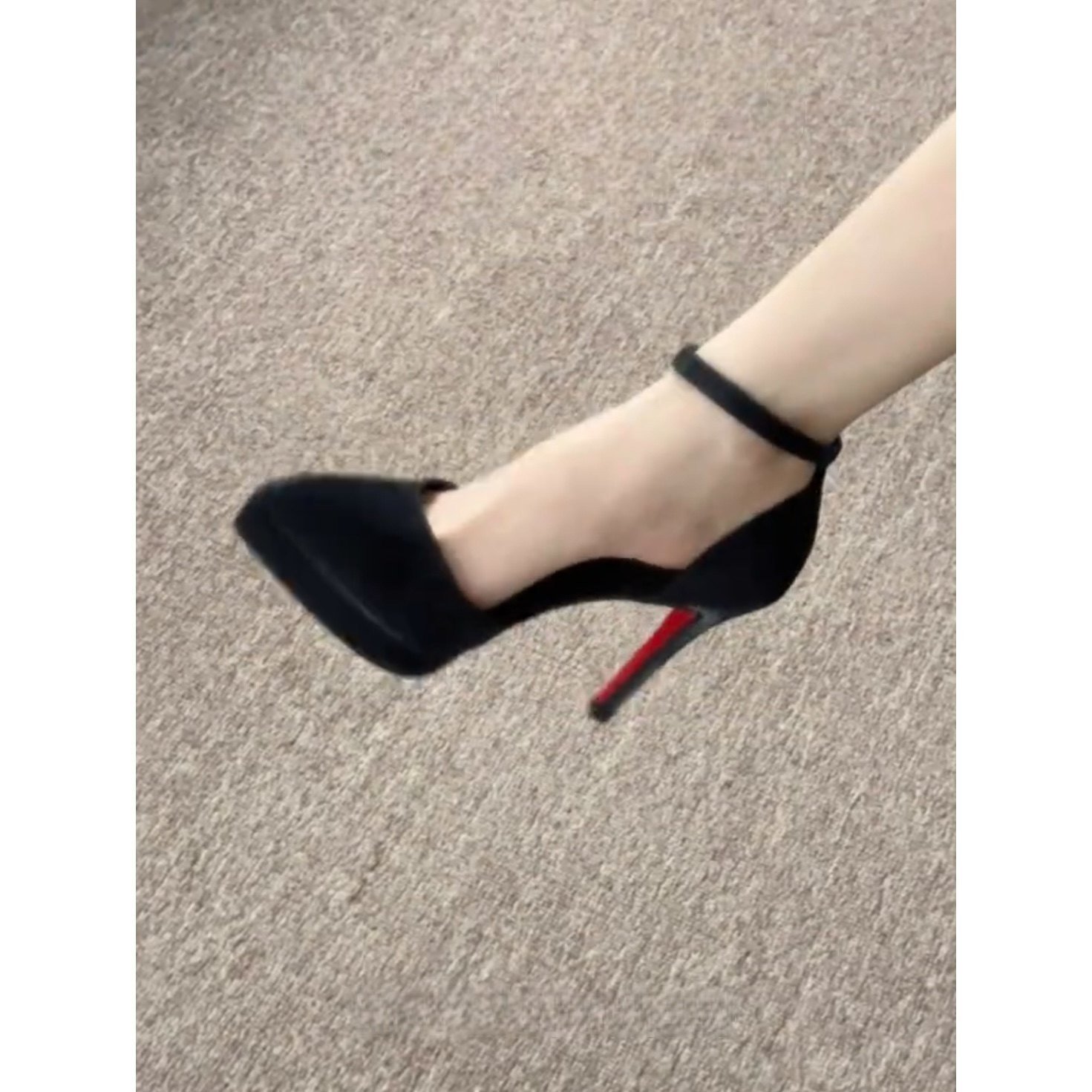 📚 春夏小众设计感中空尖头高跟鞋黑色红底细跟防水台一字扣高跟鞋女