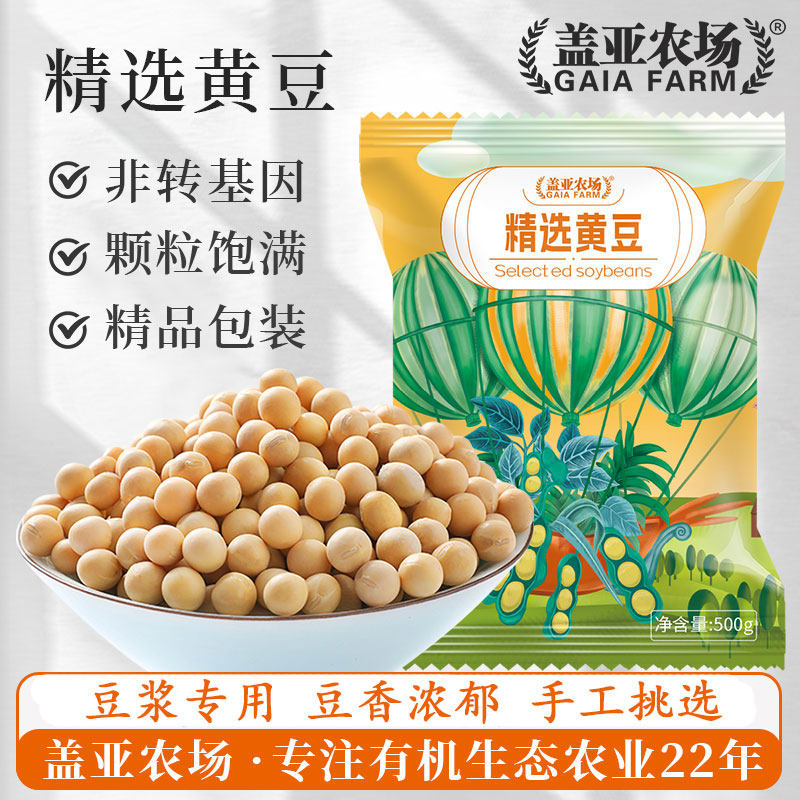 📚 盖亚农场东北黄豆500g新货非转基因农家自种打豆浆大豆五谷杂粮