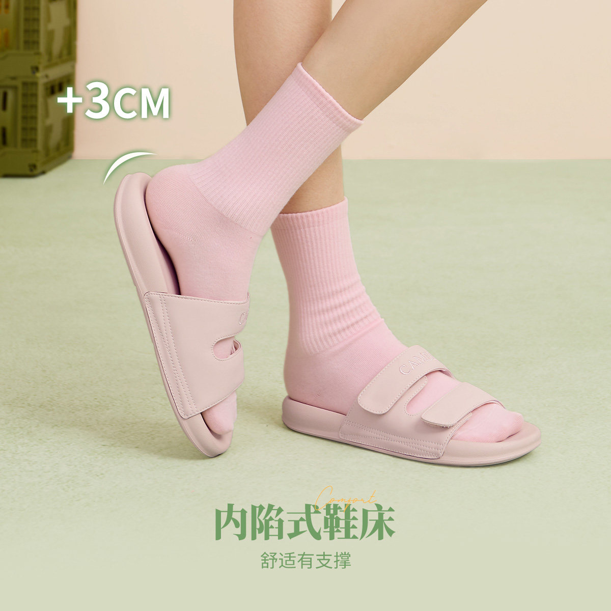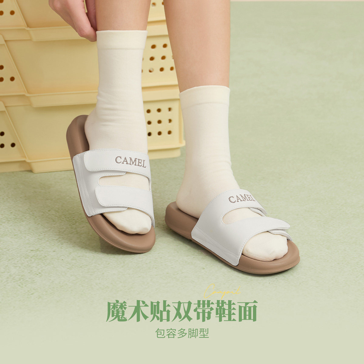 📚 骆驼女鞋勃肯鞋2026夏季新款一字拖魔术贴软底厚底凉鞋外穿拖鞋女