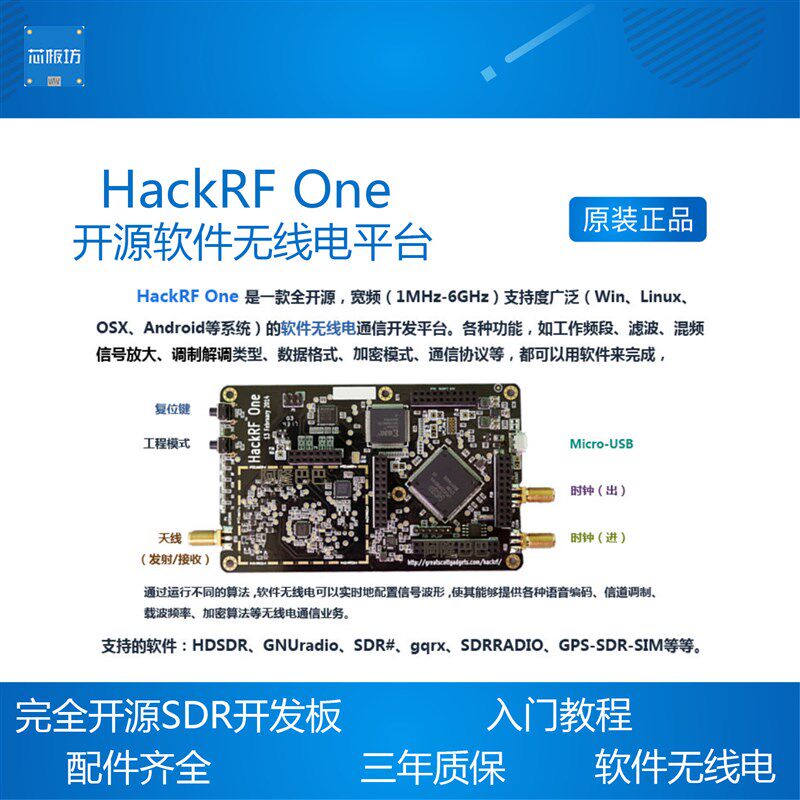 📚 美国原版 HackRF One(1MHz-6GHz) 开源软件无线电平台 SDR开发板