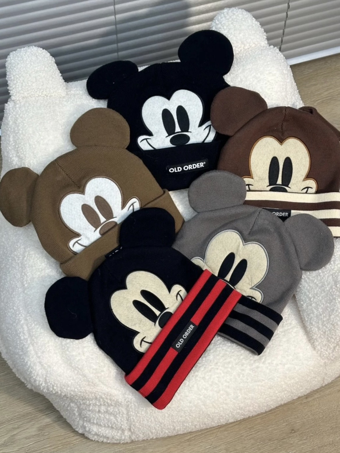 📚 正品OldOrder 迪士尼联名米奇联名包头帽针织帽 王嘉尔同款黑白棕