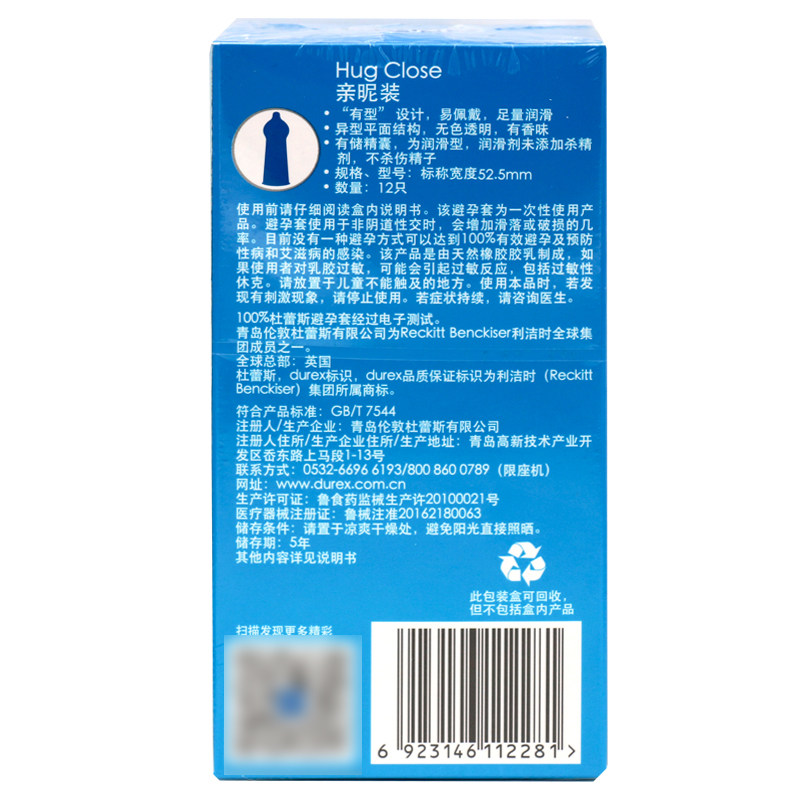 📚 杜蕾斯亲昵装12只装 易戴舒适足量润滑 Durex Hug Close
