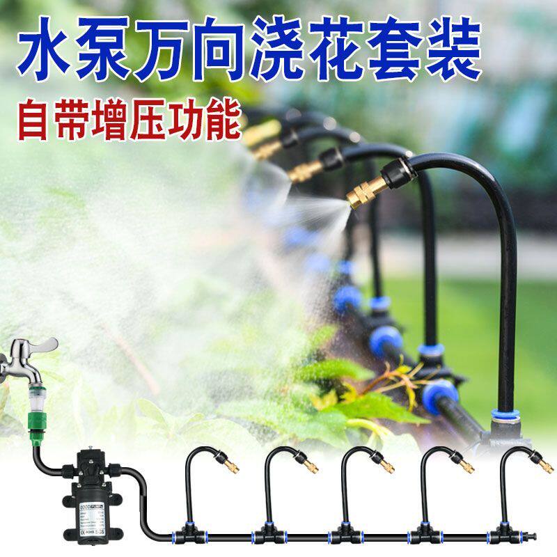📚 喷雾喷头万向自动浇花浇水神器加压吸水泵雾化喷淋系统降温喷水管