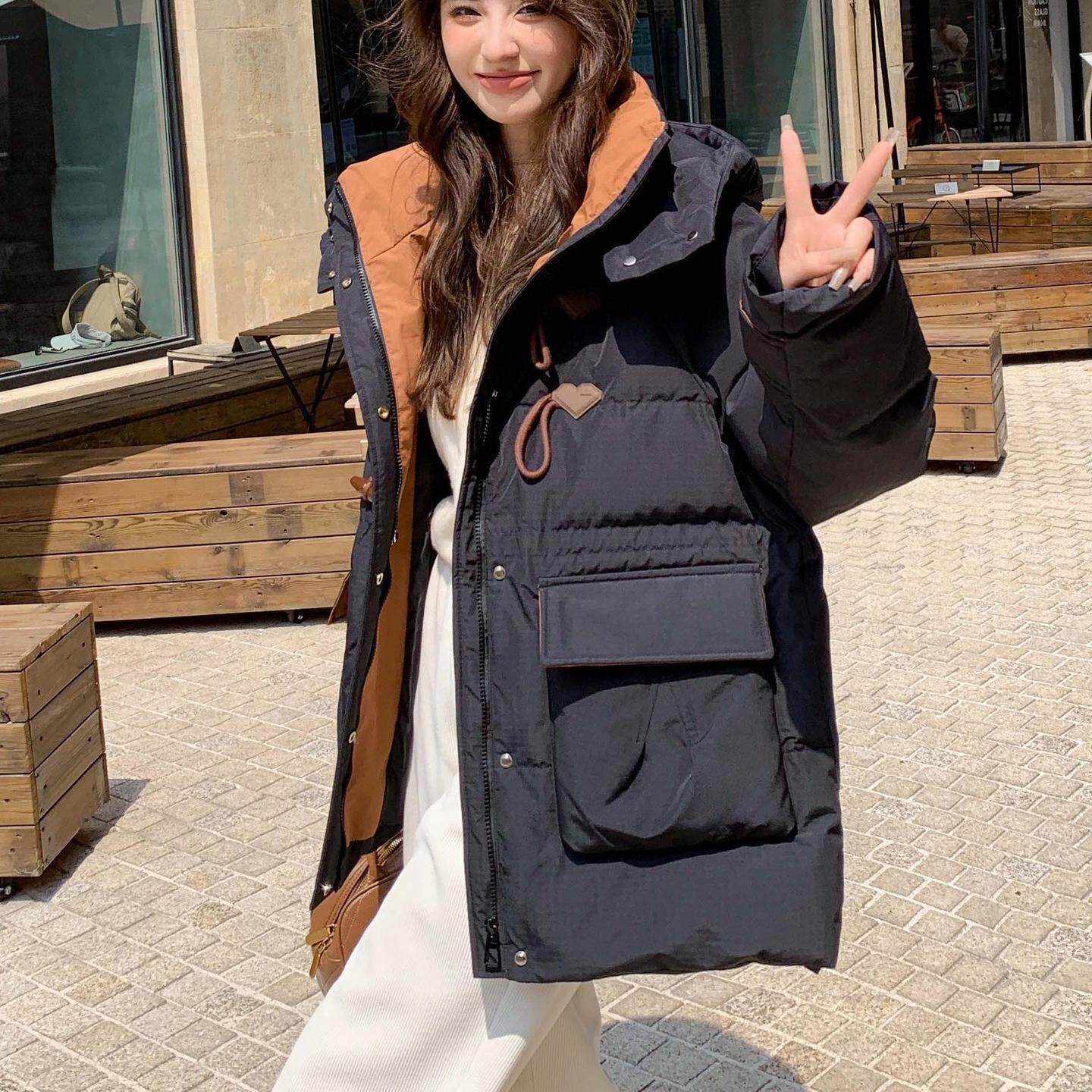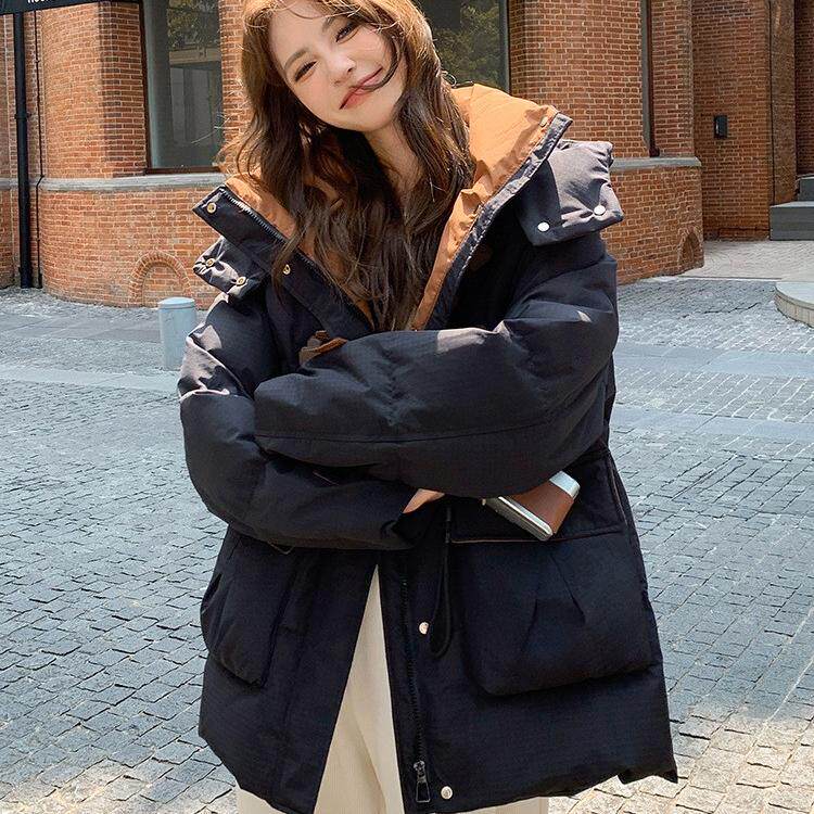 📚 300斤加肥加大码中长款羽绒服女冬胖mm复古牛角扣200韩版鸭绒外套