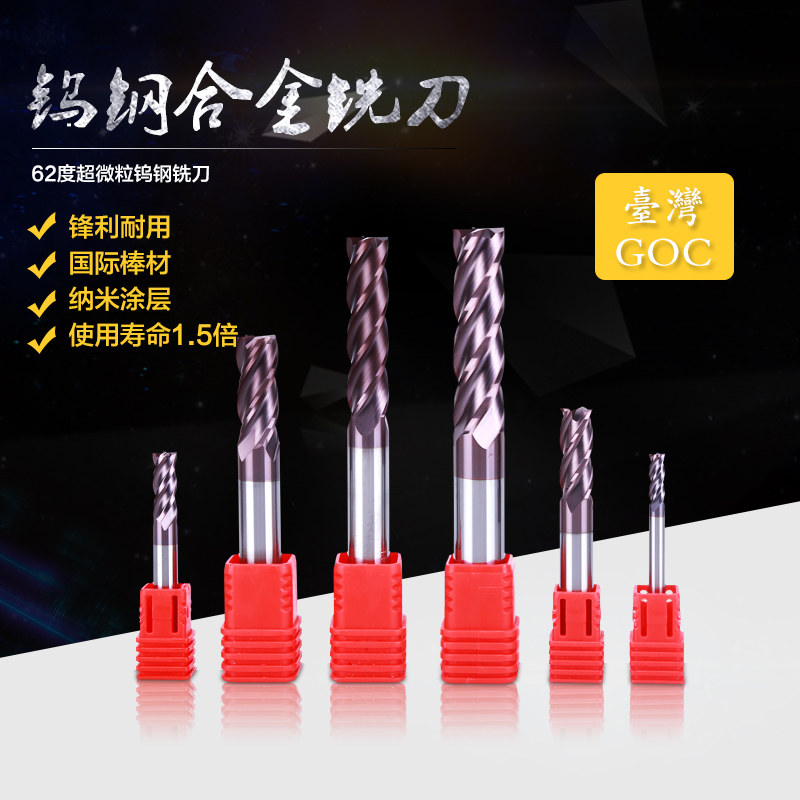 📚 62度GOC钨钢平底立铣刀CNC数控机床加工硬质合金不锈钢1-20mm4刃