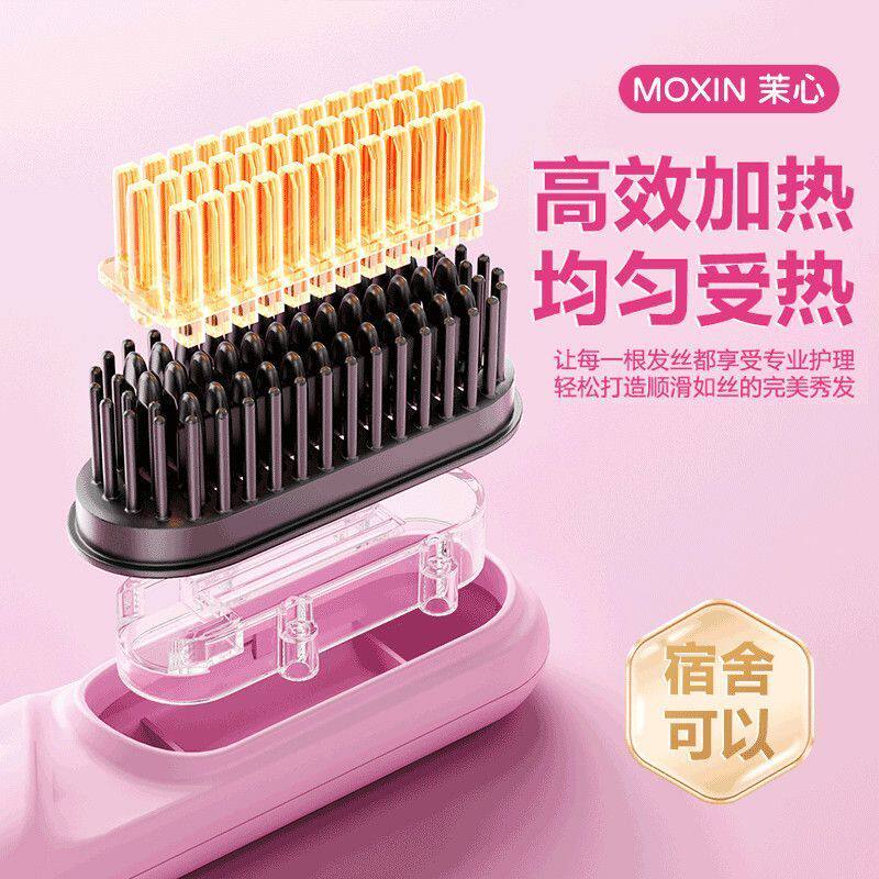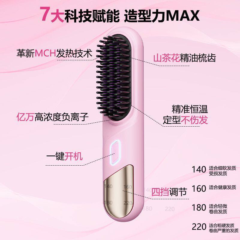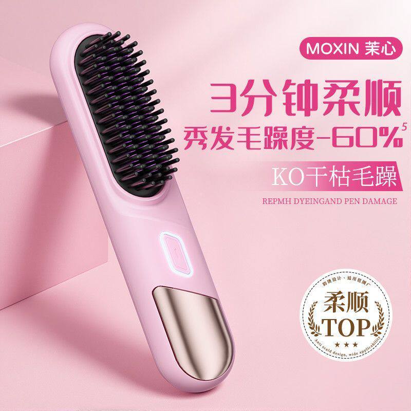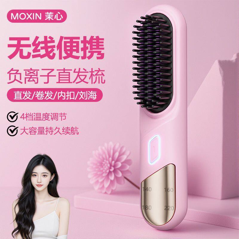 📚 茉心一梳即顺无线便携负离子护发干湿两用且速热卷直二合一直发梳