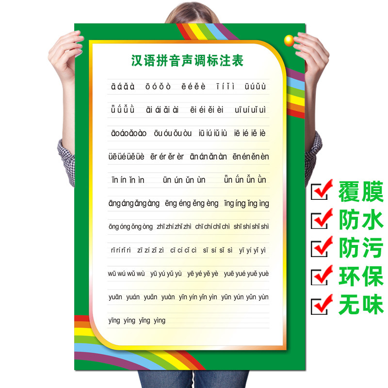 📚 汉语拼音声调标注表墙贴挂图小学生整体认读音节全表声母韵母海报