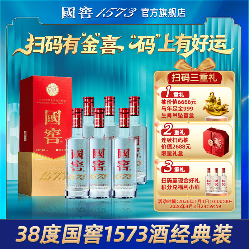 📚 【官方自营】国窖1573 38度整箱 浓香型白酒500ml*6 过节送老丈人