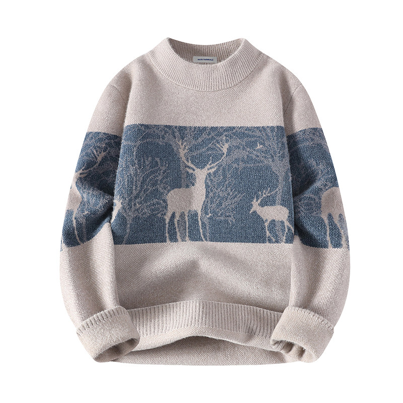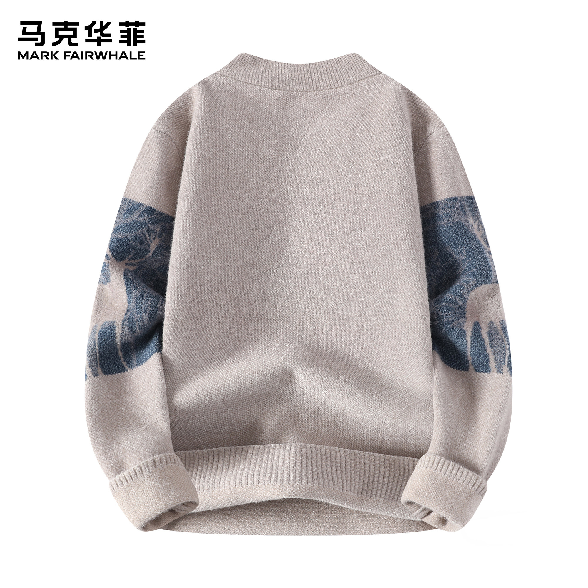 📚 马克华菲毛衣男士新款潮牌美式复古撞色绣花重磅半高领宽松针织衫