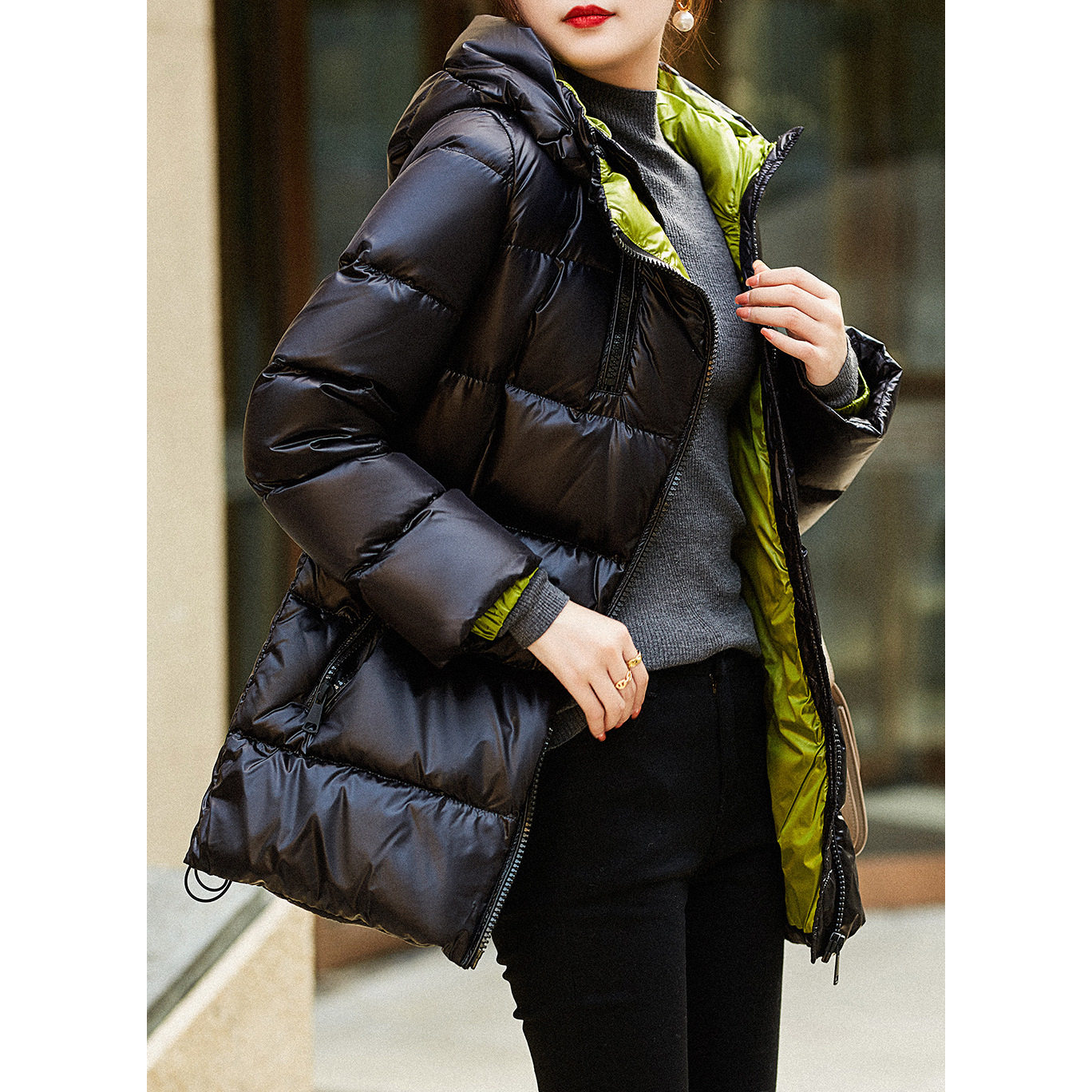📚 双面羽绒服95白鹅绒 连帽短款外套高端 2026新款黑色女款面包服