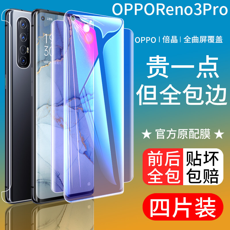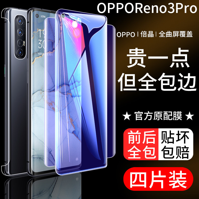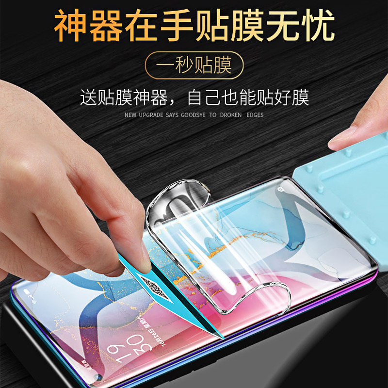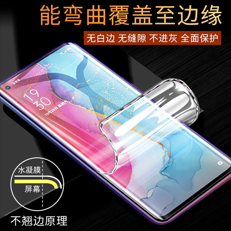 📚 opporeno3pro钢化水凝膜reno3全包膜5g元气版前后手机贴膜全屏覆盖por原装曲面全身蓝光保护软膜磨砂原厂防摔