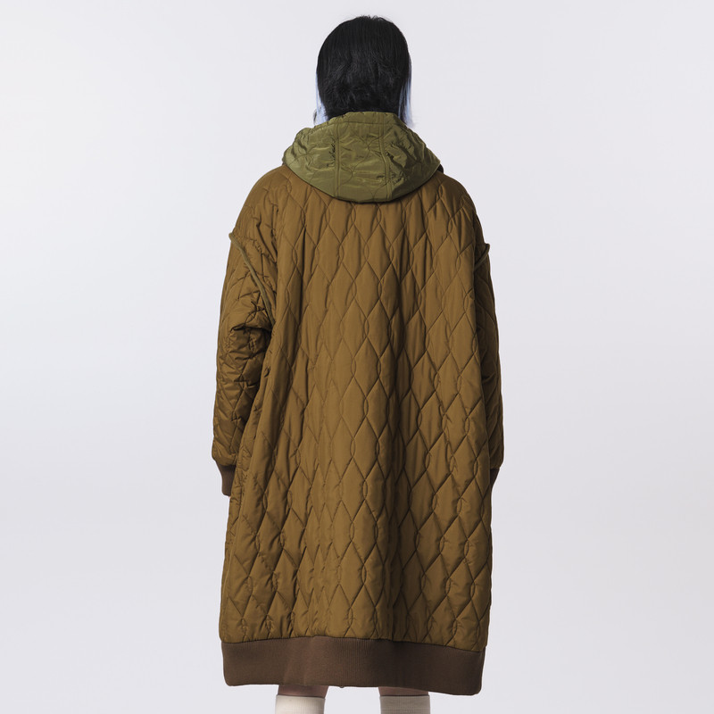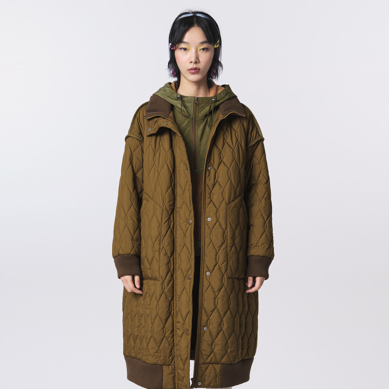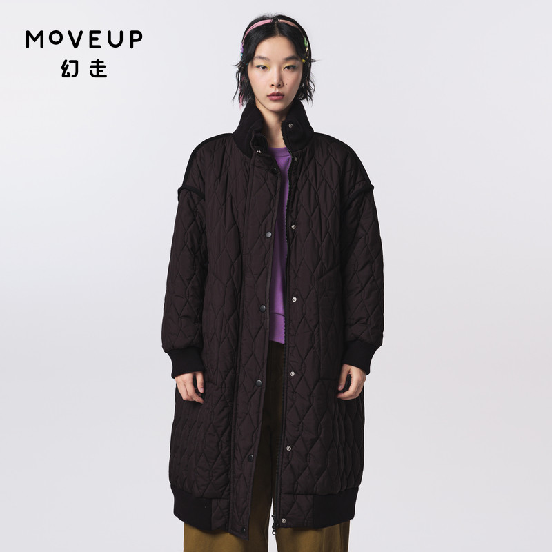 📚 MOVEUP幻走2023冬季新款.FUN系列罗纹绣花贴袋设计师长款棉外套女
