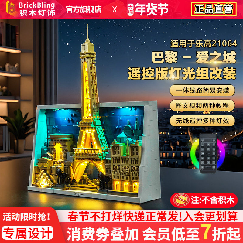38¥ CZ009 nUR9UlrGlME¥ https://m.tb.cn/h.7wcmO7i BrickBling适用乐高灯光21064巴黎爱之城建筑积木灯饰配件改装LED --------------------- 【原售价】149元 【现售价】149元。